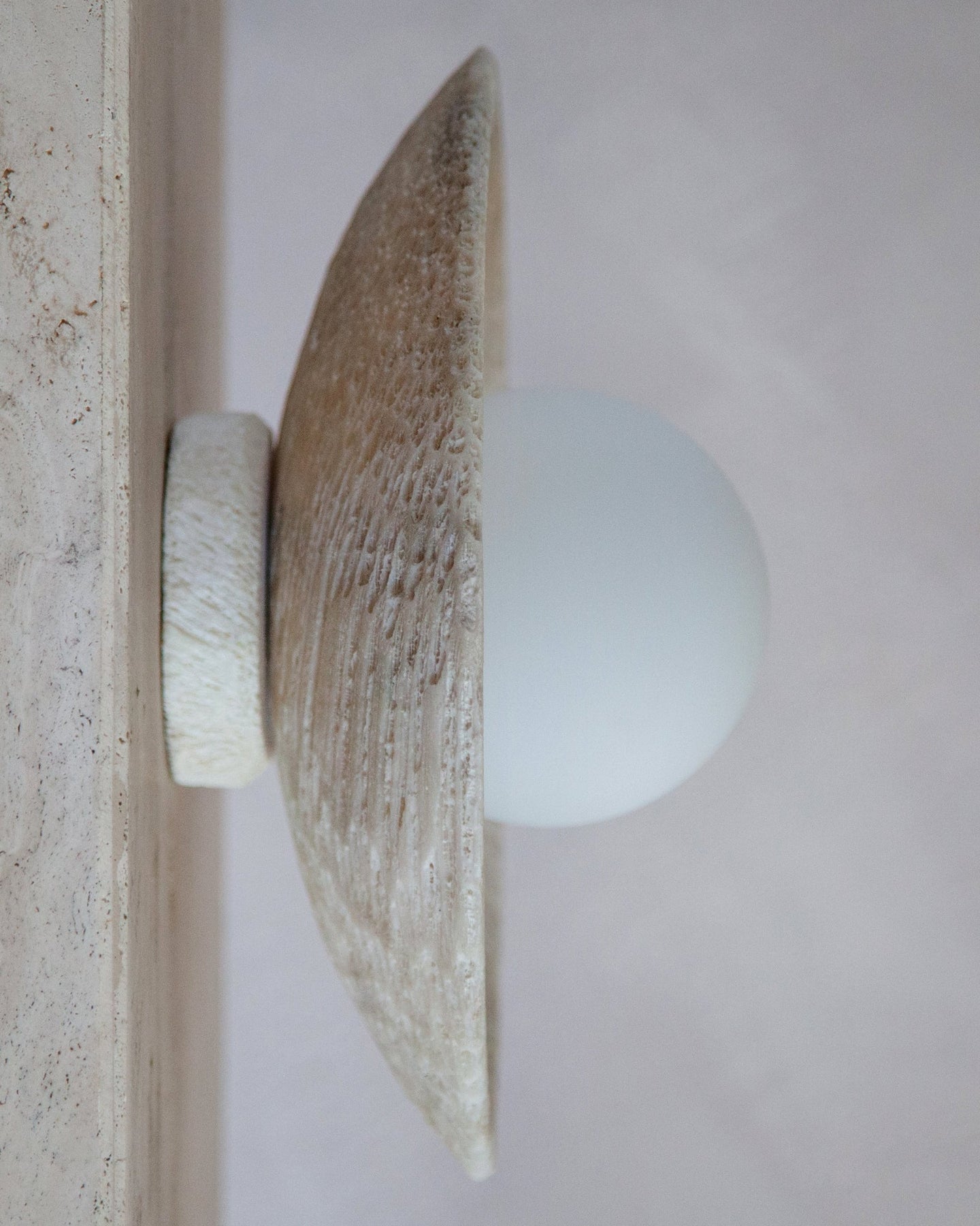 Introducing Marovo Island Traders' Fossil Coral Orb Wall Sconce - a homage to nature's serene beauty and timeless allure. Crafted from sustainably sourced Fossil Coral, a natural stone, moulded over countless years, this exceptional lighting fixture infuses a touch of rustic elegance into any space. Each piece, showcasing the stone's distinctive character, serves as a truly organic addition, celebrating Earth's rich geological history and sacred geometry.