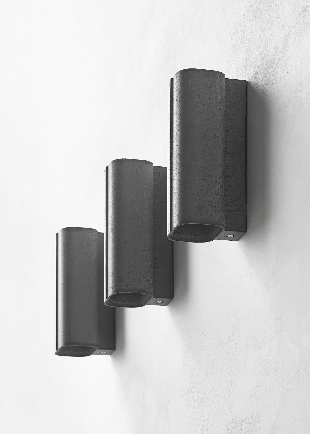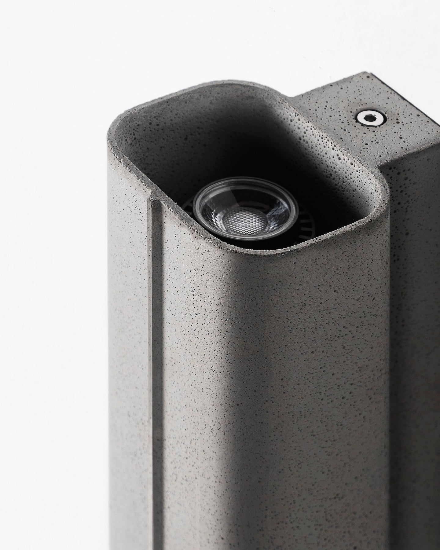 This contemporary up down wall light casts elegant shadows through indirect lighting to contour your walls, adding drama. The industrial design combines the simple nature in shape with refining detail through the texture of concrete.
