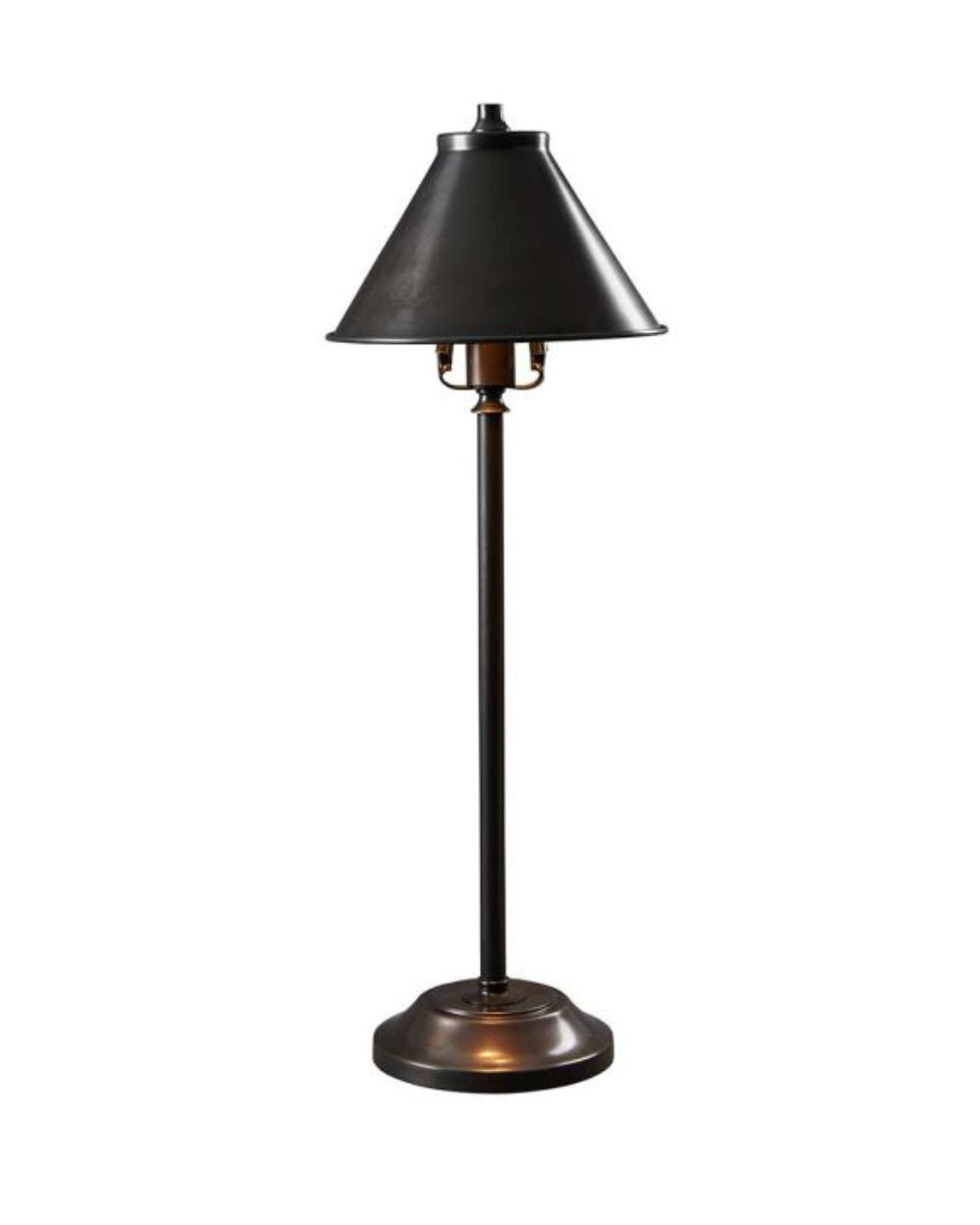 The Conical Shade Table Lamp is an industrial-style lamp. Crafted from steel and brass, this fitting is available in three interesting finishes and spreads an ambient downlight. Being only 21cm wide, this lamp is ideal for compact spaces and for lighting up dining tables. Suitable for both domestic and commercial applications, this is an eye-catching lamp that can suit a variety of interiors.