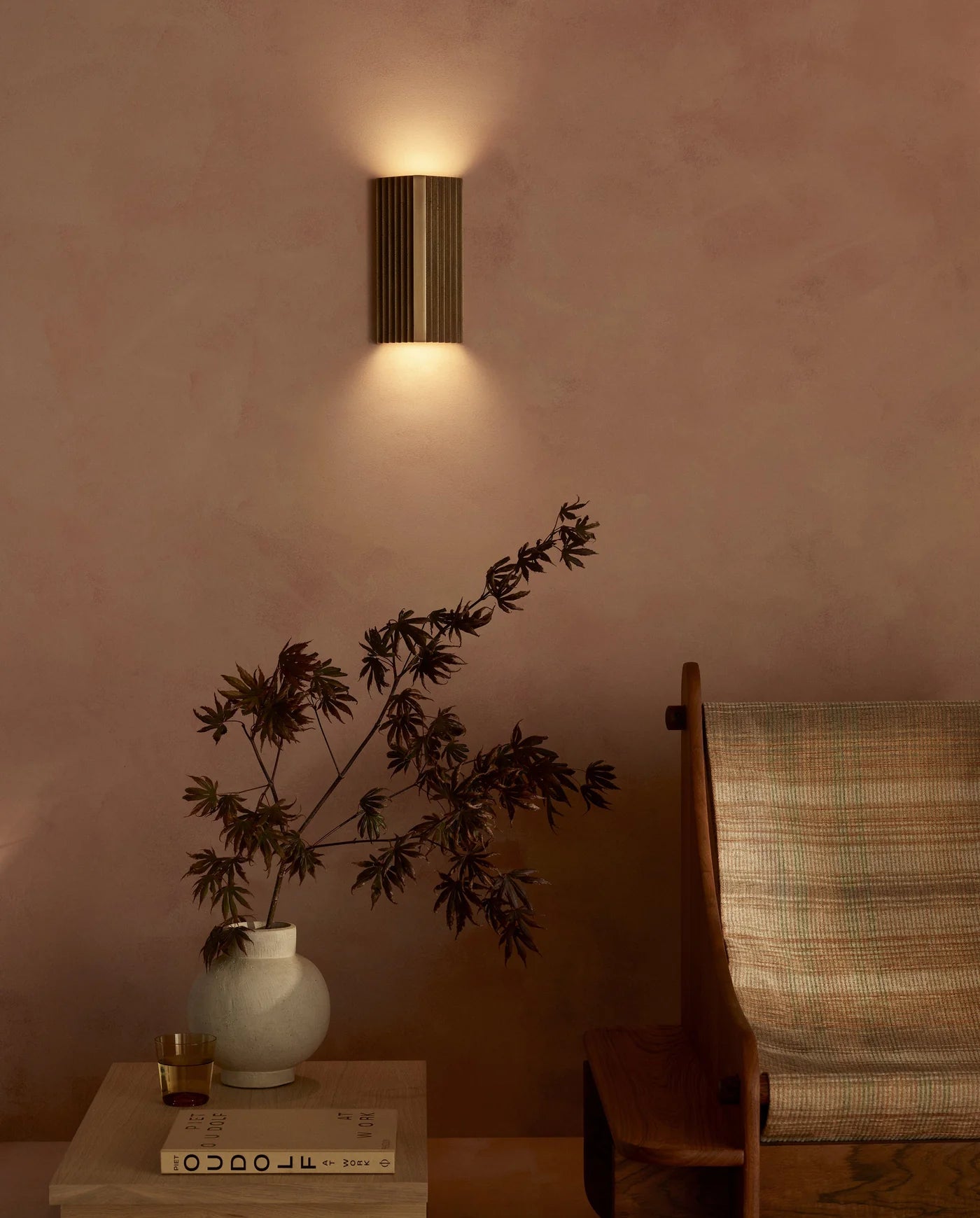 Inspired by nature and its unique rock formations, this wall light is a testament to longevity and it will set an inviting atmosphere in any space with an industrial touch. IP65-rated, the triangular-shaped body is made from high-quality brass poured into a mould when molten and taking shape as it cools. Available in up and down or only downlight design, this antique brass or bronze refined lamp will effortlessly elevate outdoor pathways, terraces, bathrooms or corridors.
