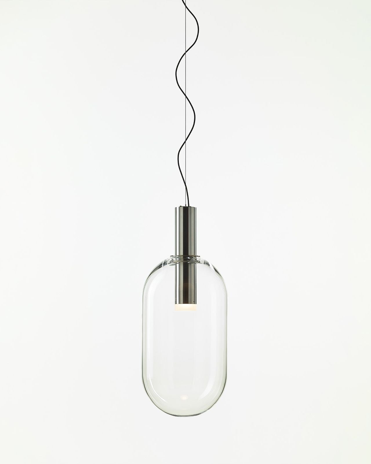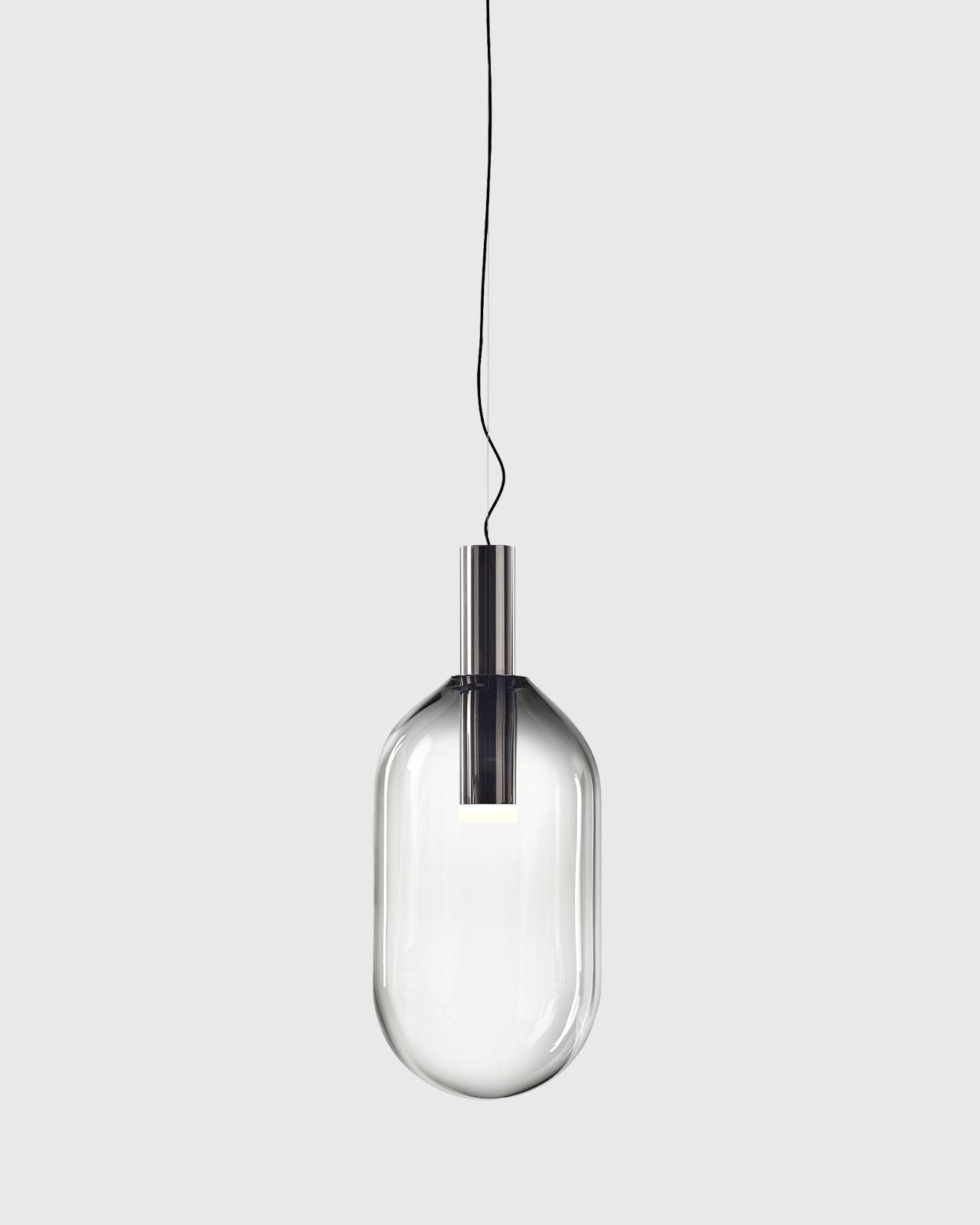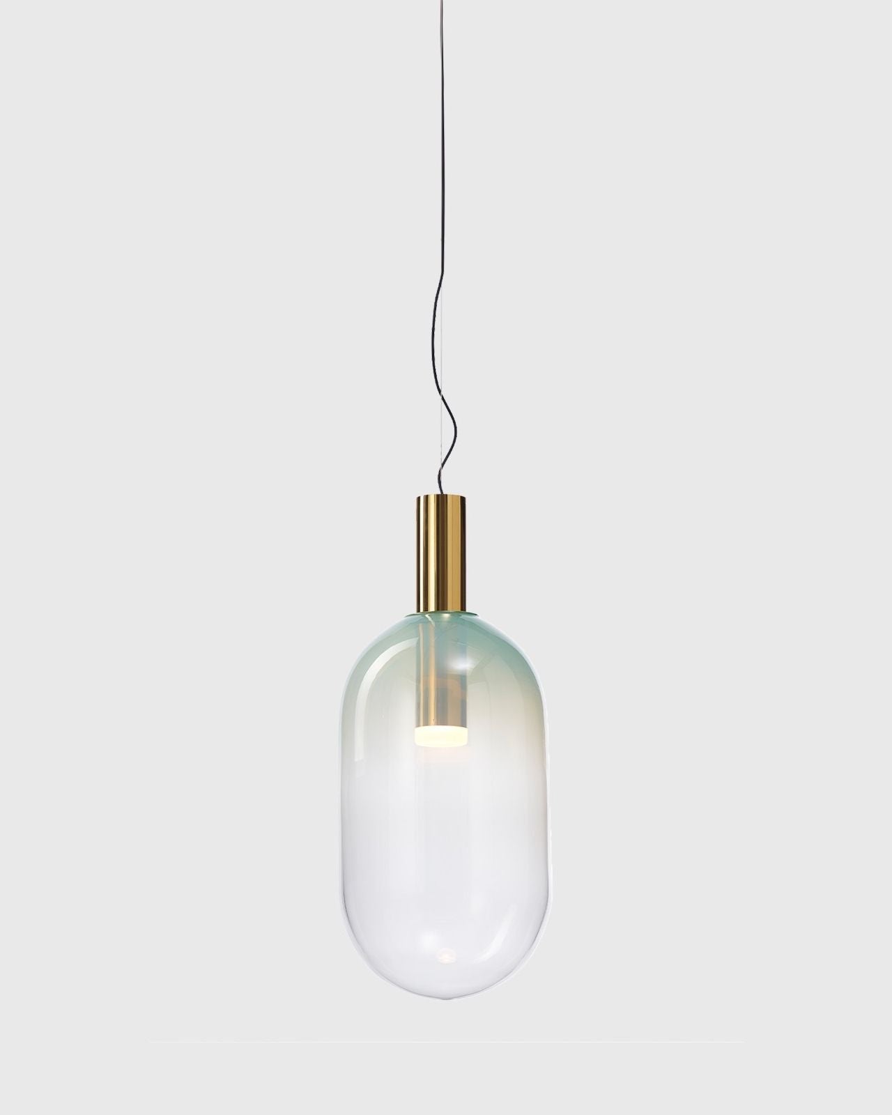 Captivating and modern, this eye-catching centrepiece features an elegant gold or silver mount and a capsule hand-blown shade available in mint green, smoked or clear finish. Like breathing life into this range of suspensions, the colour gradient is created by being gradually blown into the molten mass. Versatile, this pendant can be displayed as a singular fixture or as an aesthetic composition of shapes and finishes to enhance any modern or contemporary living room, dining room or commercial area such as restaurant or bar.