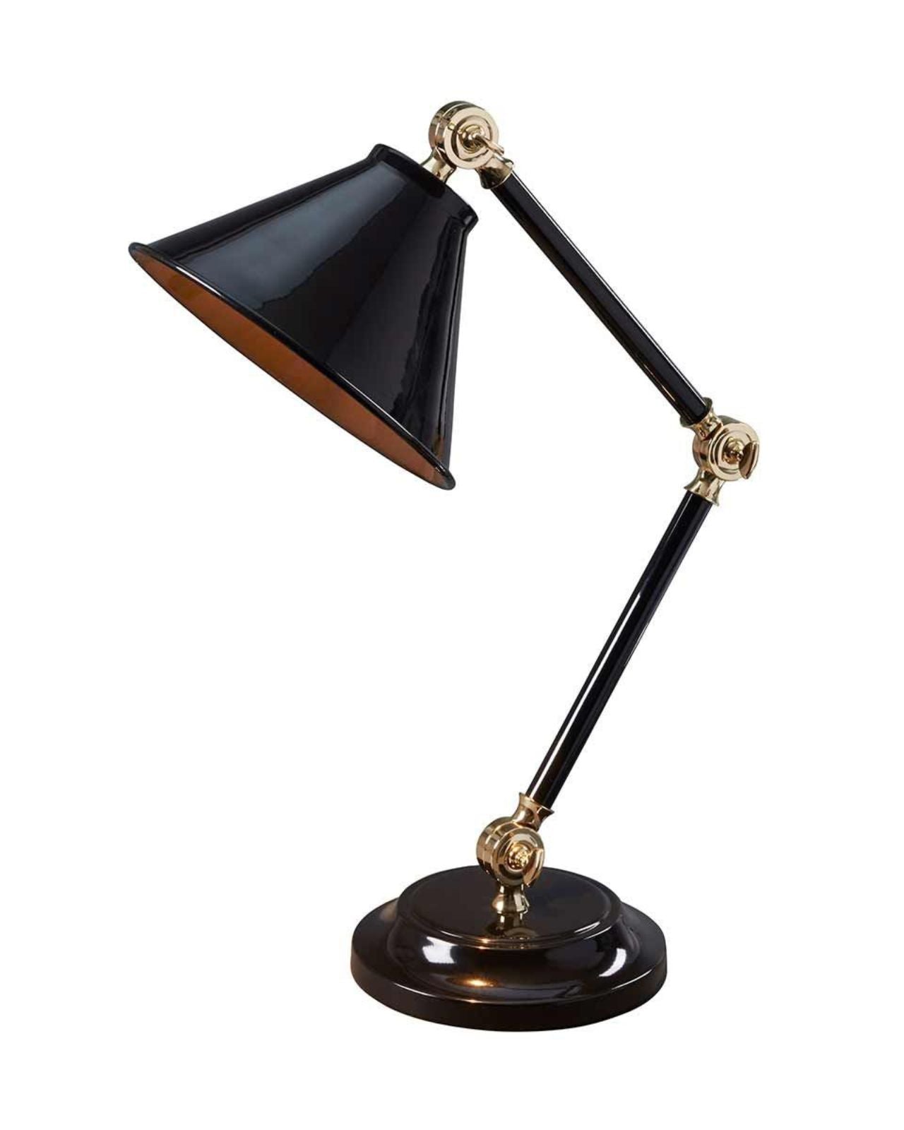 Designed in Surrey, England, the Mini Conical Shade Adjustable Table Lamp is an Industrial-style design with three adjustable knuckles, allowing for the positioning of the shade and height to act as a functional light. Available in three different finishes, this is both an aesthetic and practical fitting, suitable for illuminating office desks and bedside tables. Pair with a vintage-style filament globe to add to the traditional appeal of this lamp.