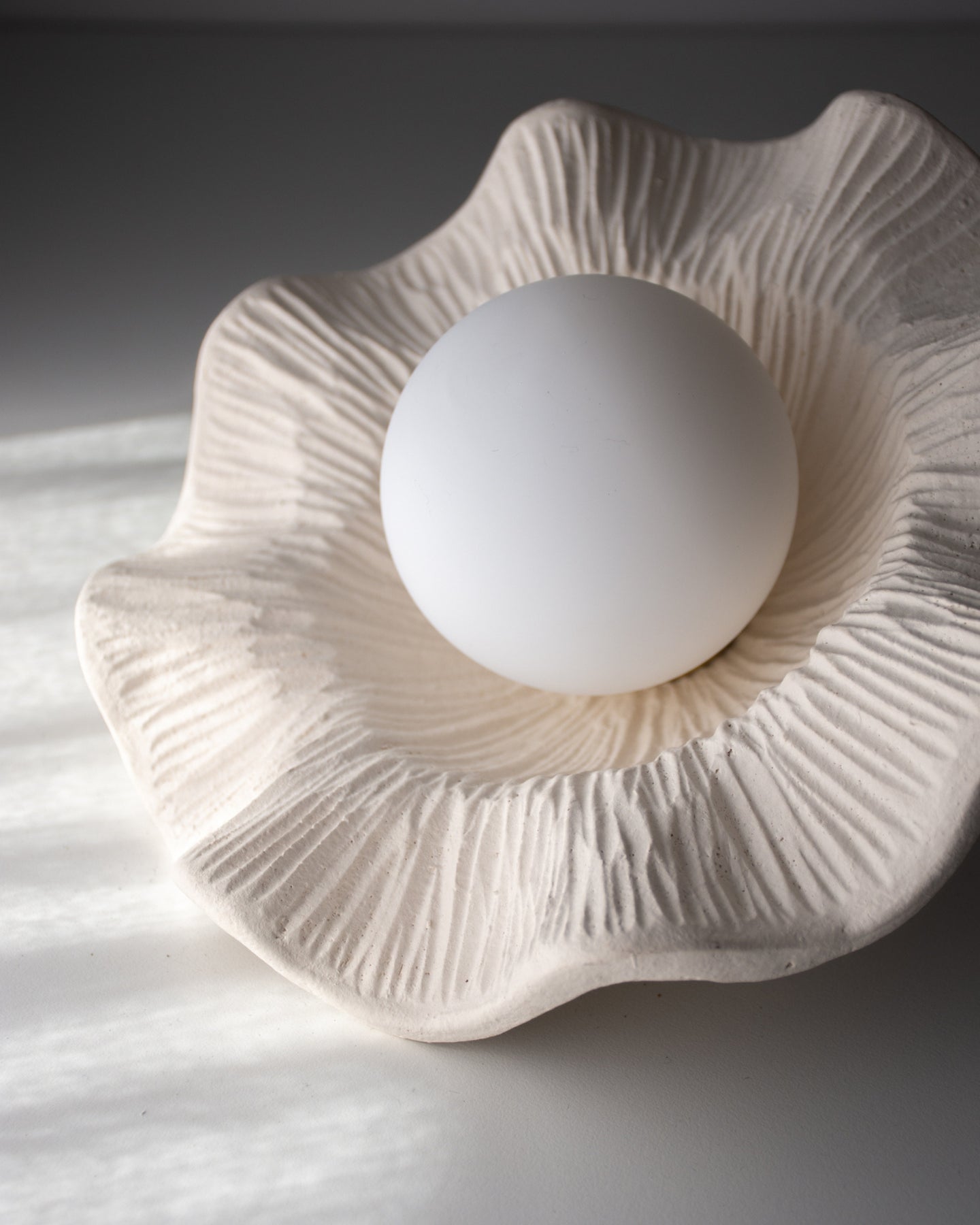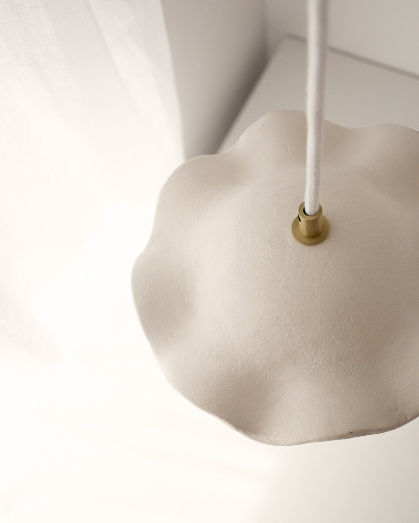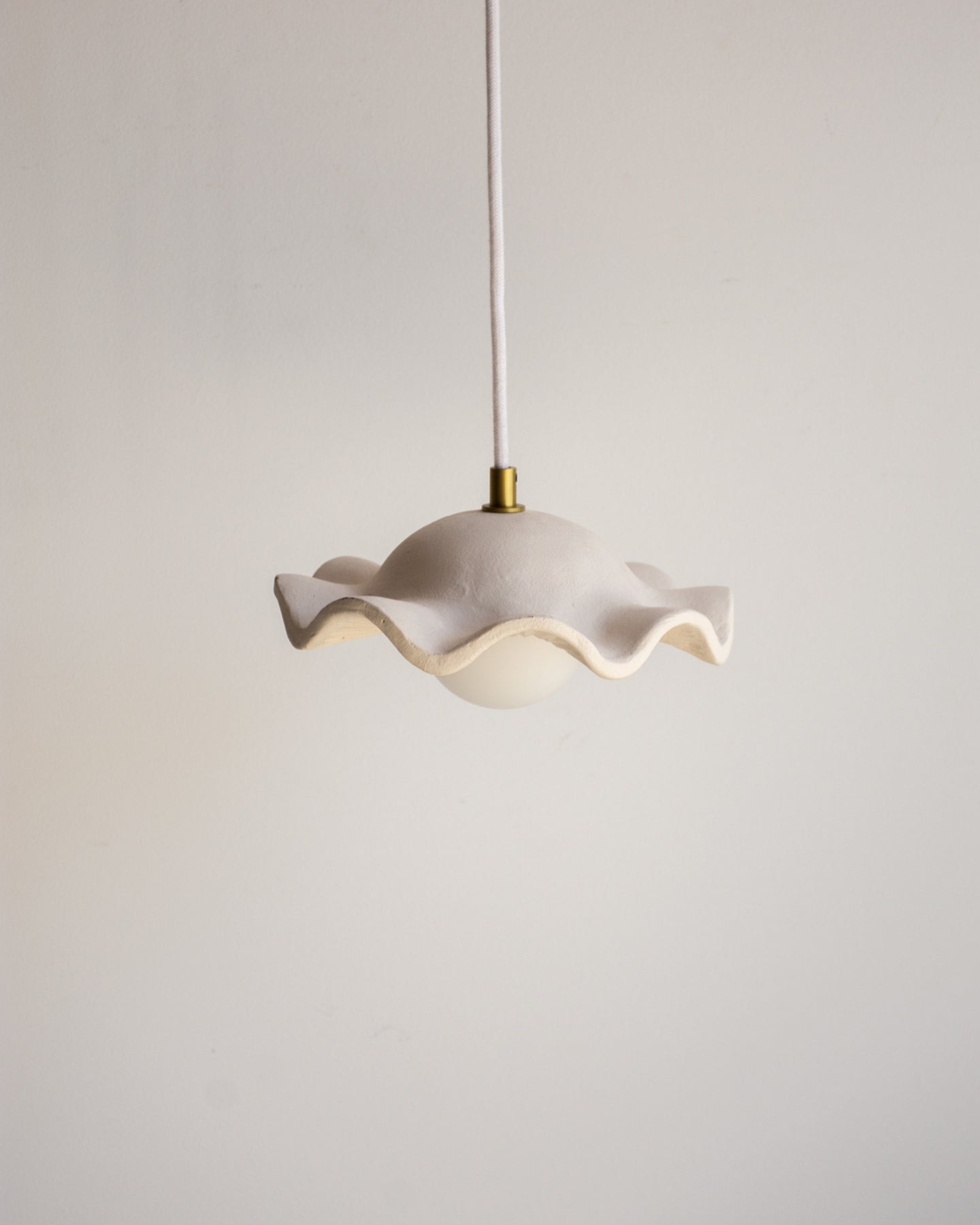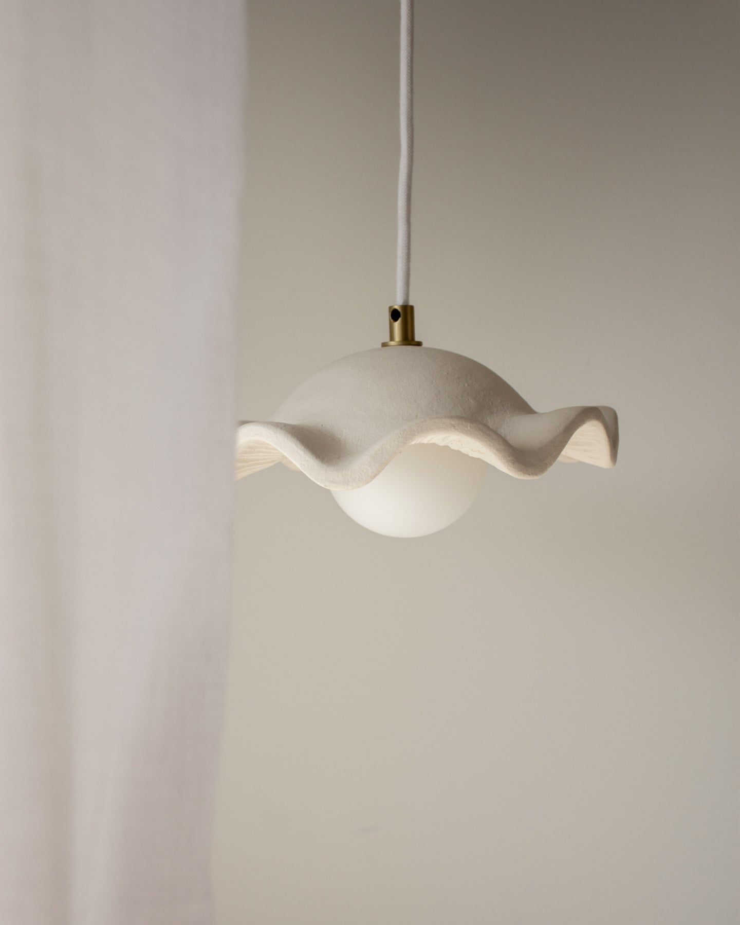 Indulge in the refined craftsmanship of the Ceramic Grooved Pendant Light, adorned with intricately carved grooves and embellished with sleek satin brass elements. Each piece is meticulously crafted by hand in Ireland, inspired by the delicate wildflowers that flourish in its surroundings. The elegant ceramic shade boasts a luminous opal finish, making this pendant a perfect addition to enhance any dining room, bedroom, or hallway.