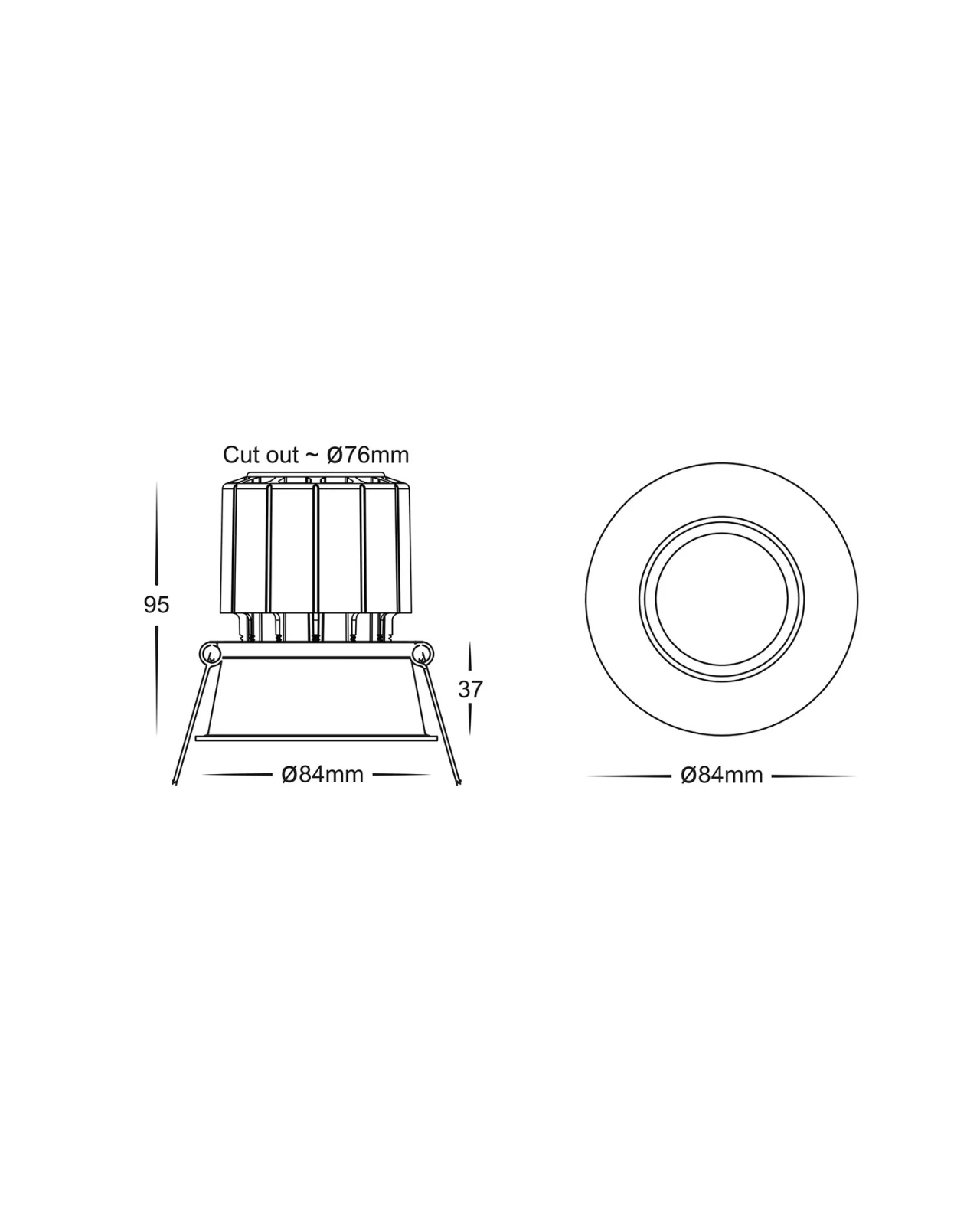 | Cut Out Dimensions | 95mm⌀ x 76mm |