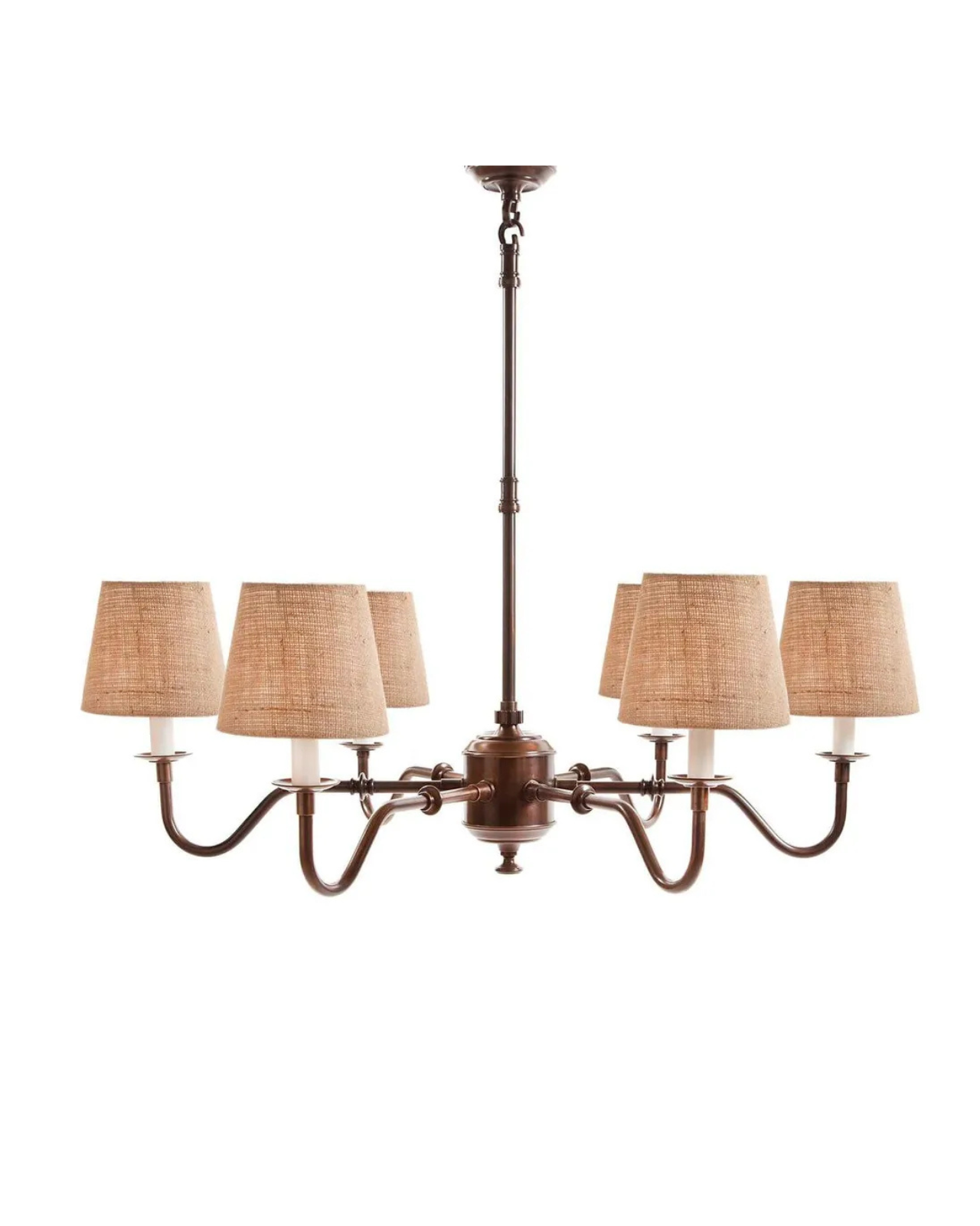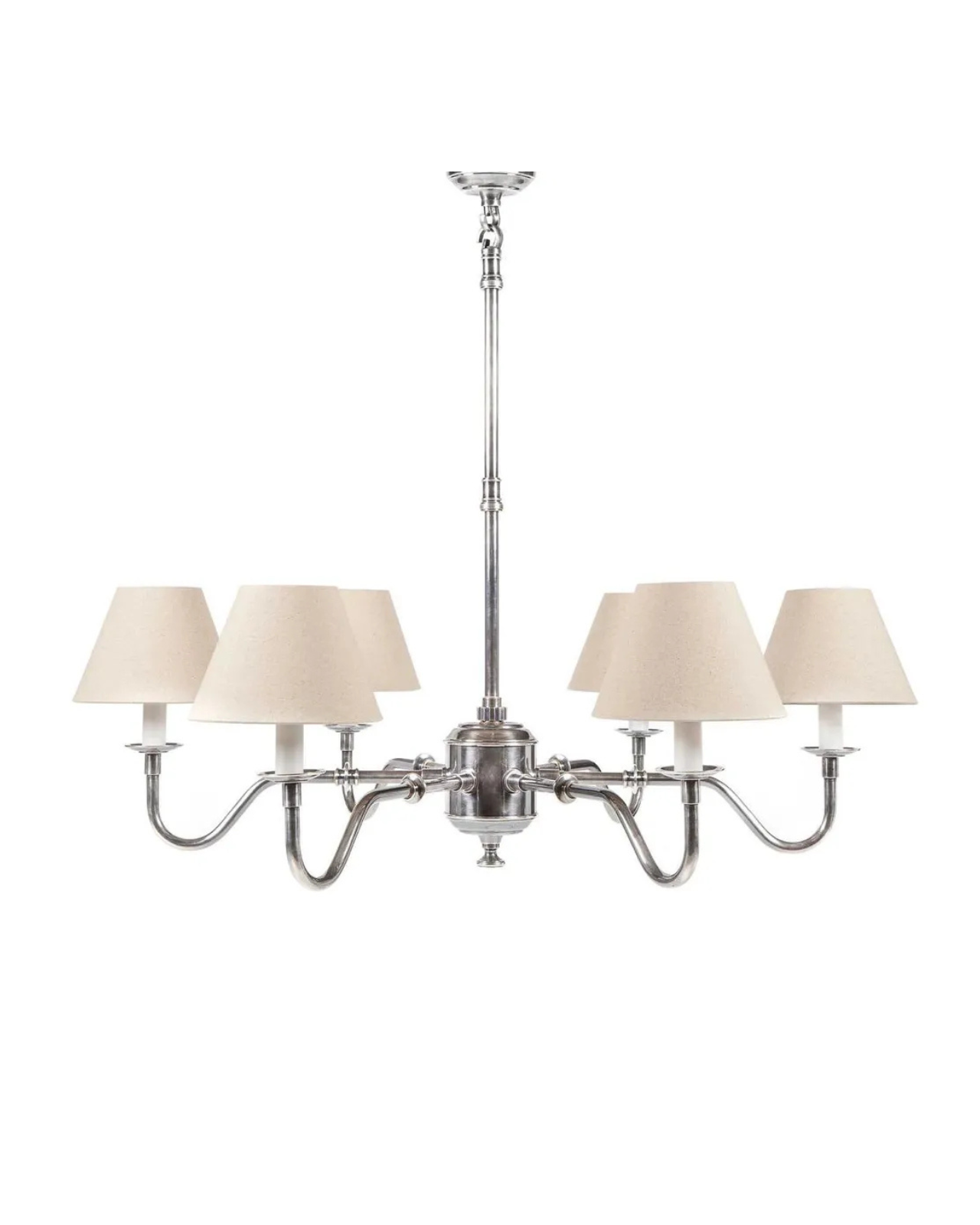 This Hamptons style 6 light chandelier comes in three finishes - antique brass, silver and bronze. This pendant will create a warm atmosphere and add a classical feel to any space. This piece would look great suspended above your dining room table, in your living room or bedroom.
