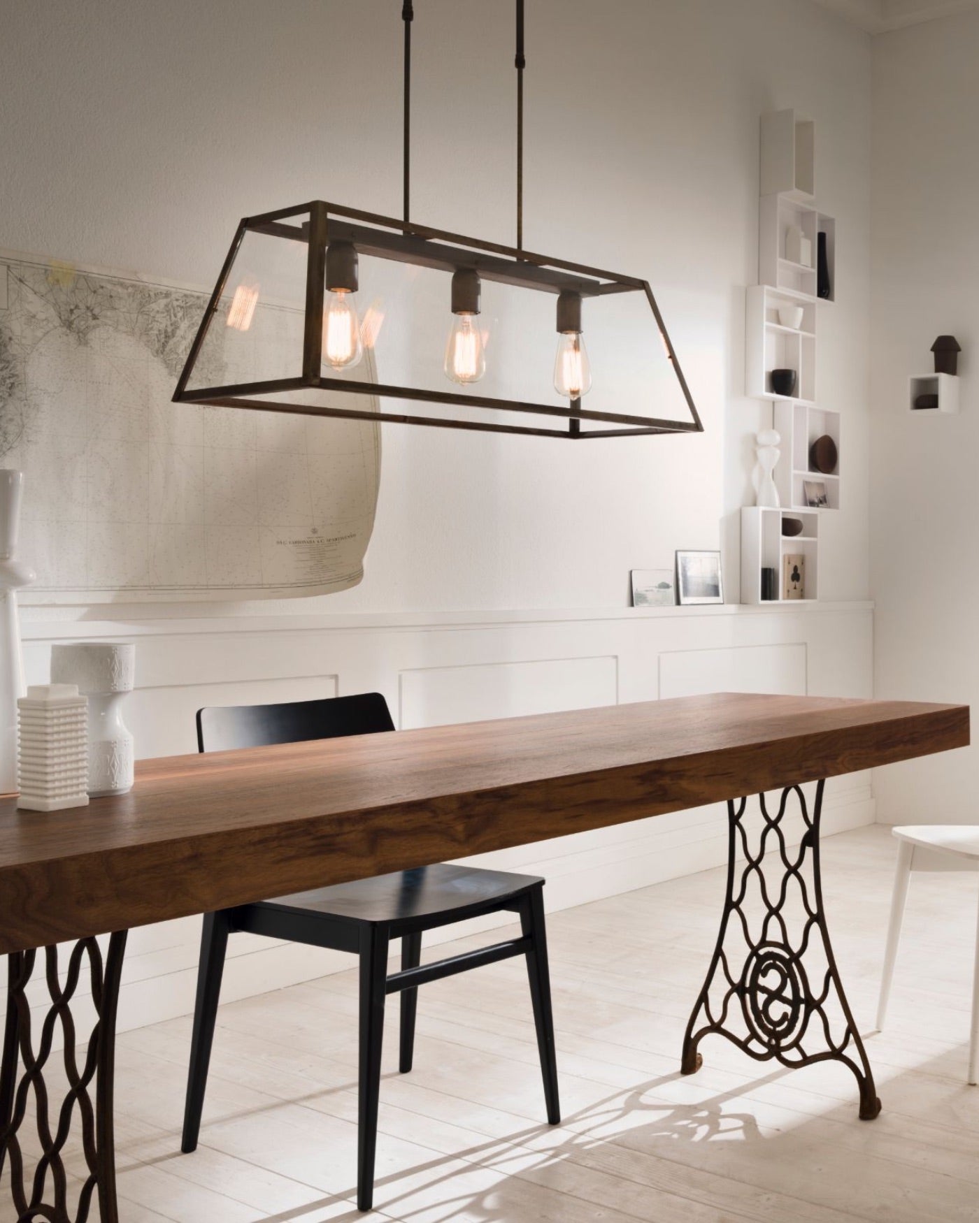 Italian Made Iron Bench Lantern In an office with white and wood colours