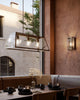 Italian Made Iron Bench Lantern In a Mediterranean style dining room