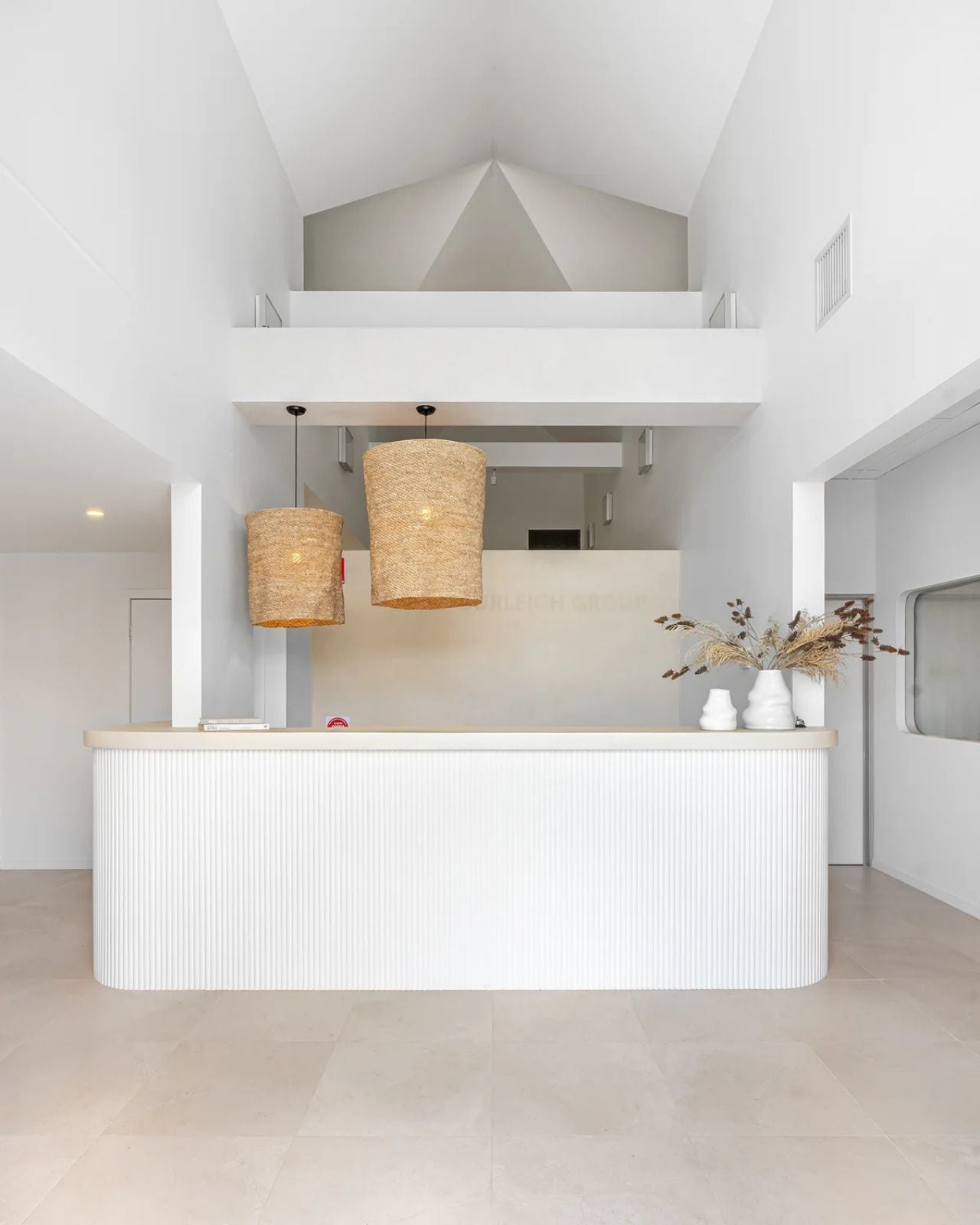 Natural Woven Banana Leaf Pendant | Lyric | Lighting Collective | Pendants Above a Commercial Service Counter