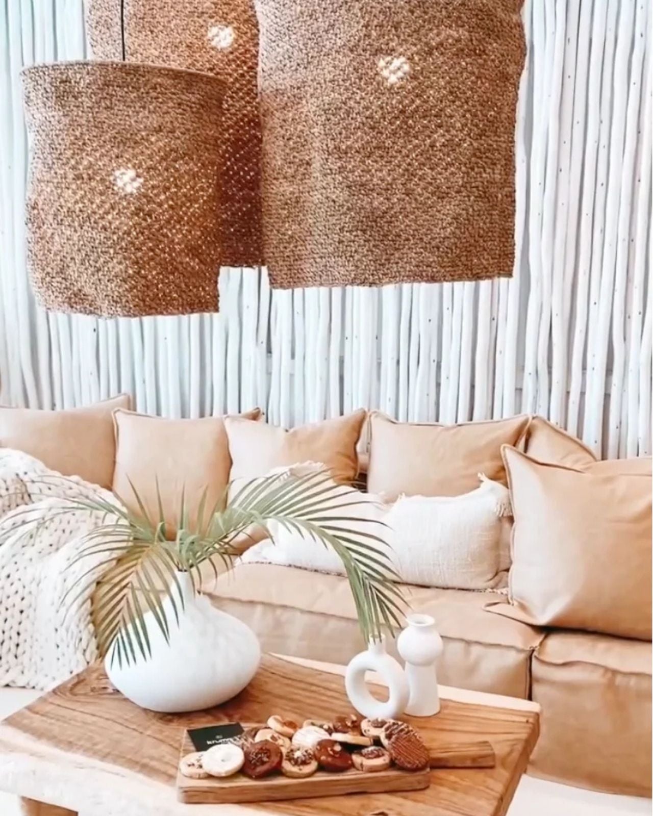 Natural Woven Banana Leaf Pendant | Lyric | Lighting Collective | Pendants in Living Room Above Coffee Table