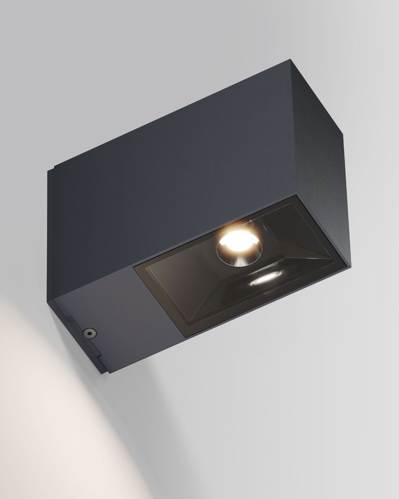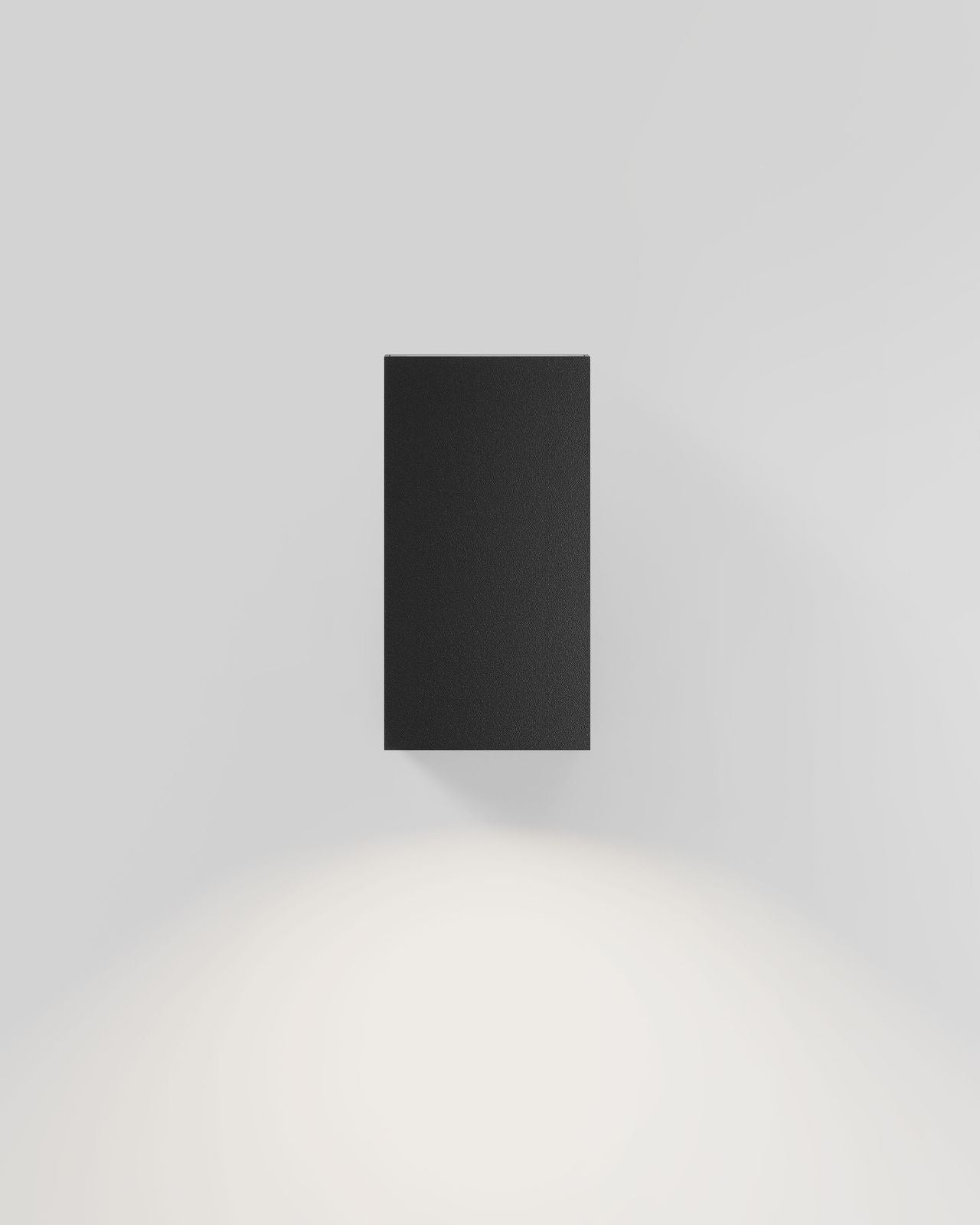 An outdoor wall downlight defined by coastal-grade resistance. Made from powder-coated die-cast aluminium paired with clear safety glass, its compact form and deep black reflector create a precise, downwards-facing beam of light. The integrated 6W LED emits a warm 2700K glow (315lm) that is dimmable via trailing edge dimmer, with an optional DALI-2-ready version for enhanced control (upon request).