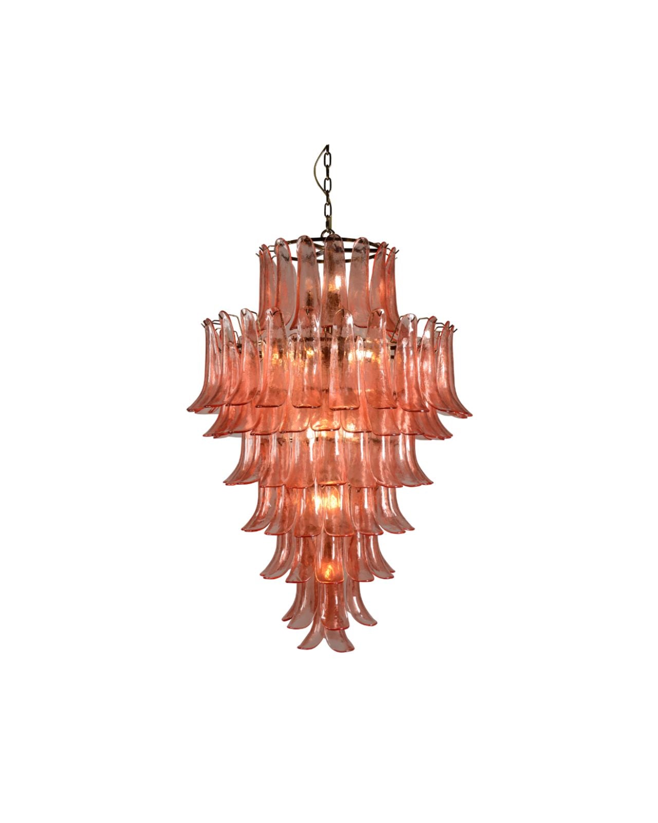 The Eclectic Tinted Glass Chandelier is a visually striking addition for both commercial and residential settings. Select from a small or large size in either a contemporary rose tint or a bold amber tint to perfectly suit the space. Enhance the visual appeal with warm and bright lightbulbs, casting captivating refractions and shadows. This pendant, featuring a chain suspension, complements traditional as well as eclectic-inspired decor.