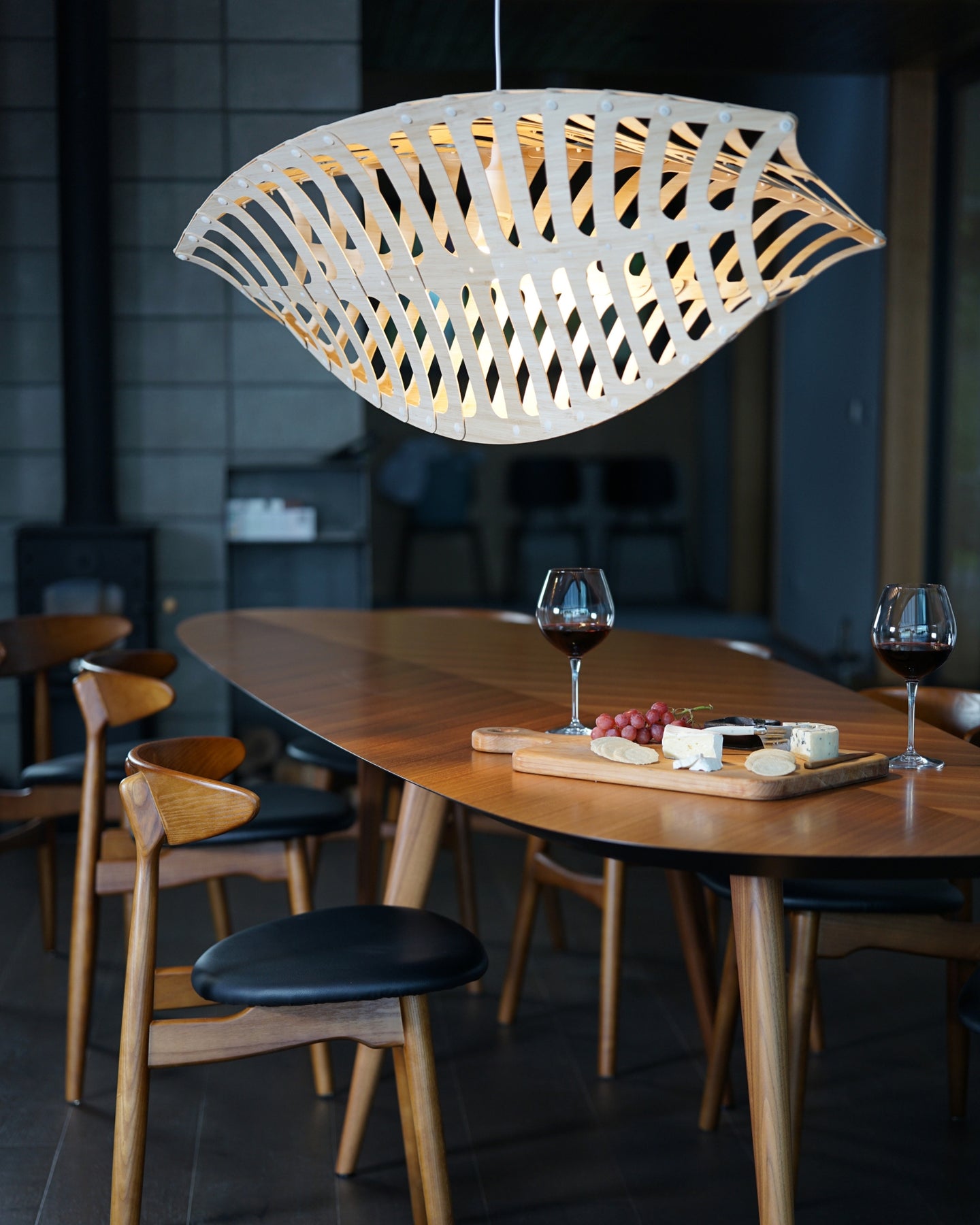 Introducing Toru, a sophisticated pendant light that pairs the elegance of modern design with the natural beauty of bamboo. Graceful and three-sided, the light is named after the Te Reo Māori word for "three". It adds a sculptural quality to any space, whether installed horizontally or vertically.