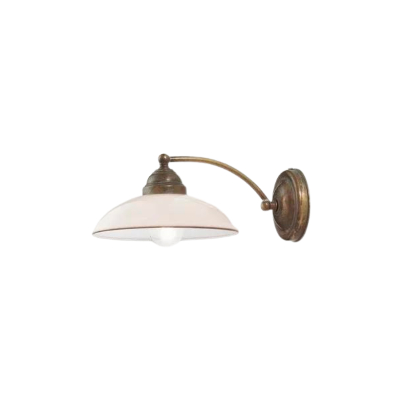 Demonstrating classic Italian design, the Italian Country Wall Light is crafted using the ancient technique of Murano glass blowing. Its rustic touch is featured through an antique brass frame with a burnt brown rim. With two shade shapes, this wall light adds elegance and versatility to any farmhouse-style area.