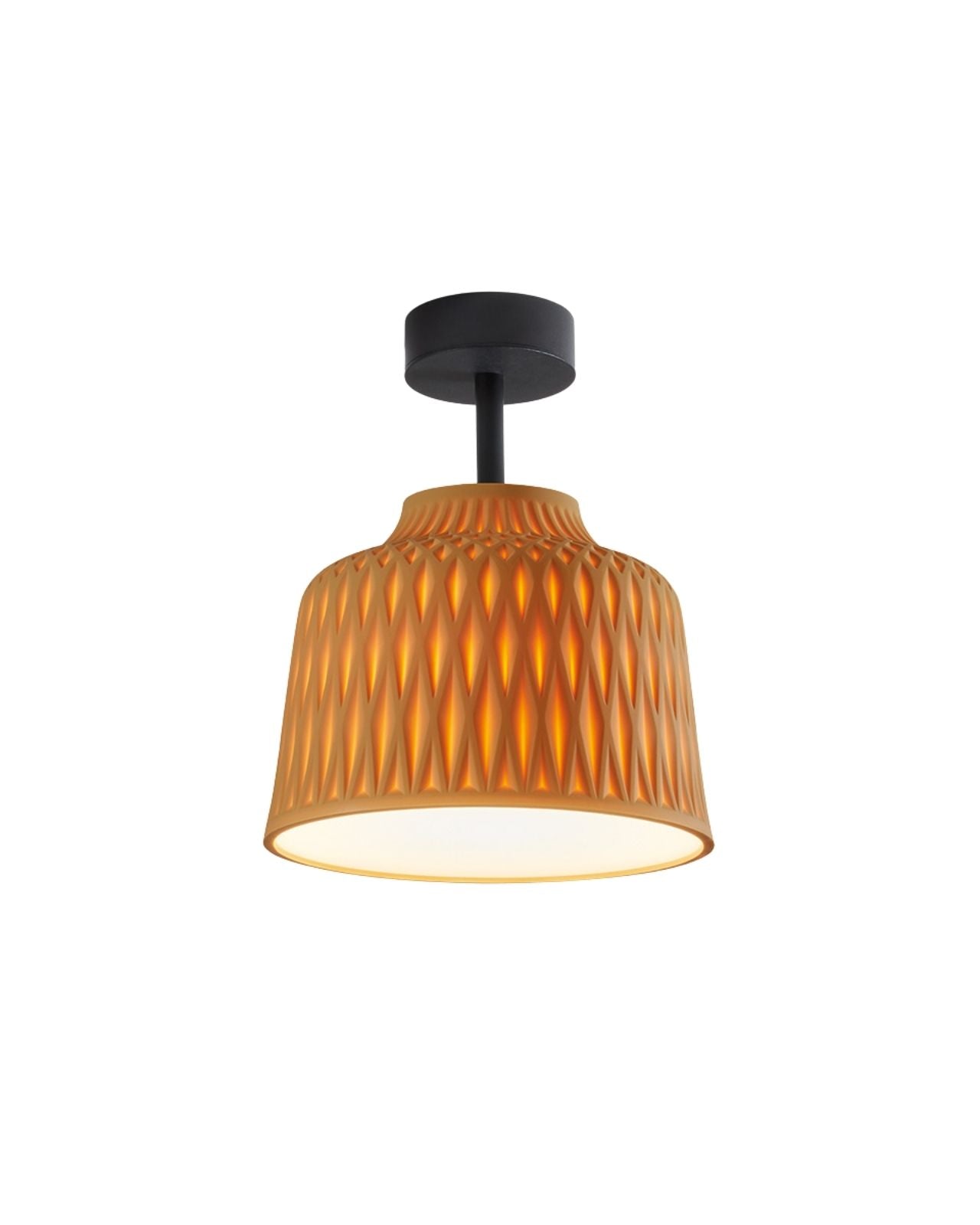 Crafted and designed in Barcelona, the Exterior Silicone Ceiling Light is a highly versatile ceiling fixture offered in three finishes: Ochre, Light Grey, and Olive Grey. Made from silicone, this innovative material provides numerous advantages. The semi-transparency of the silicone allows the fixture to emit a soft glow from its interior. Additionally, the fitting can be effortlessly taken apart for quick and thorough cleaning. Taking inspiration from the intricate patterns of Bohemian glass, this unique ceiling light serves as a standout focal point and is highly suitable for use in inclement conditions.