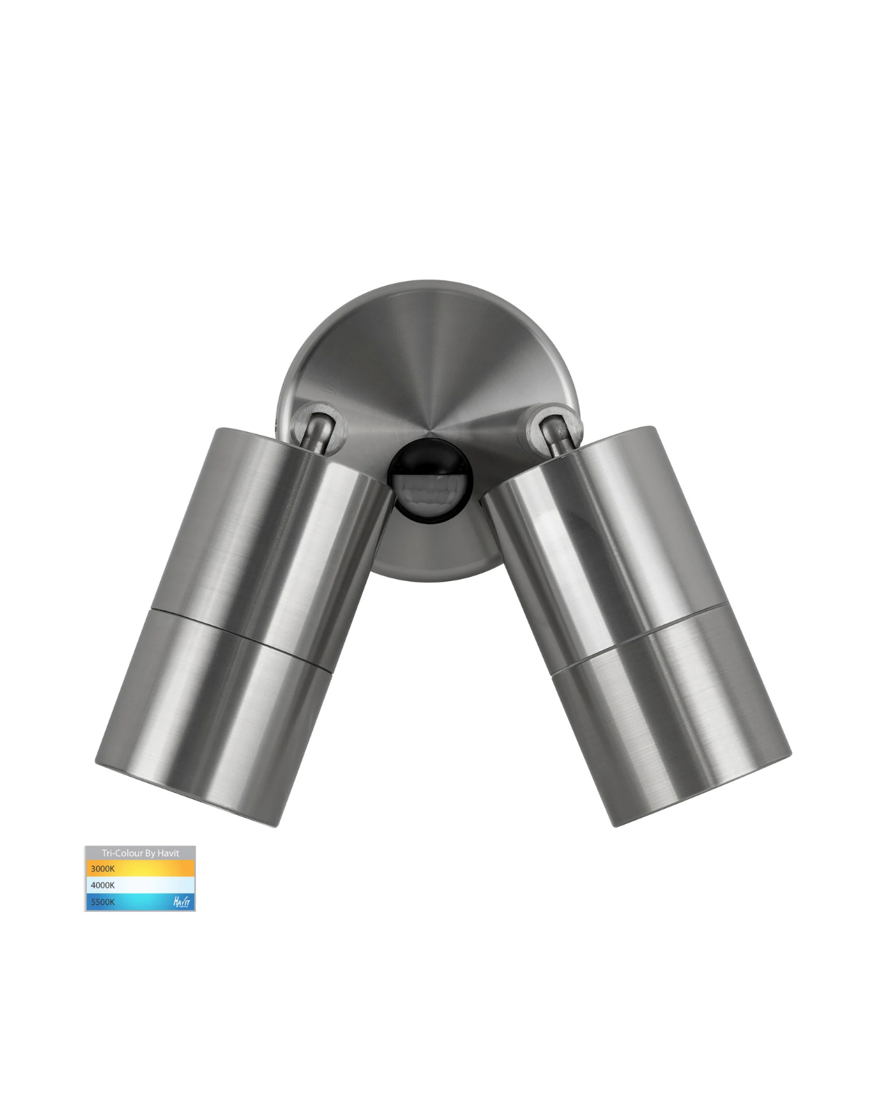 Crafted from marine-grade 316 stainless steel or poly powder coated aluminium, the Tivah double-adjustable spot light brings precision and protection to your exterior lighting. With a matching backing plate secured by stainless grub screws, you get a clean finish and reliable weather resistance. The fixture offers 90° tilt and 270° swivel for flexible positioning ideal for wall or ceiling/eave installation.