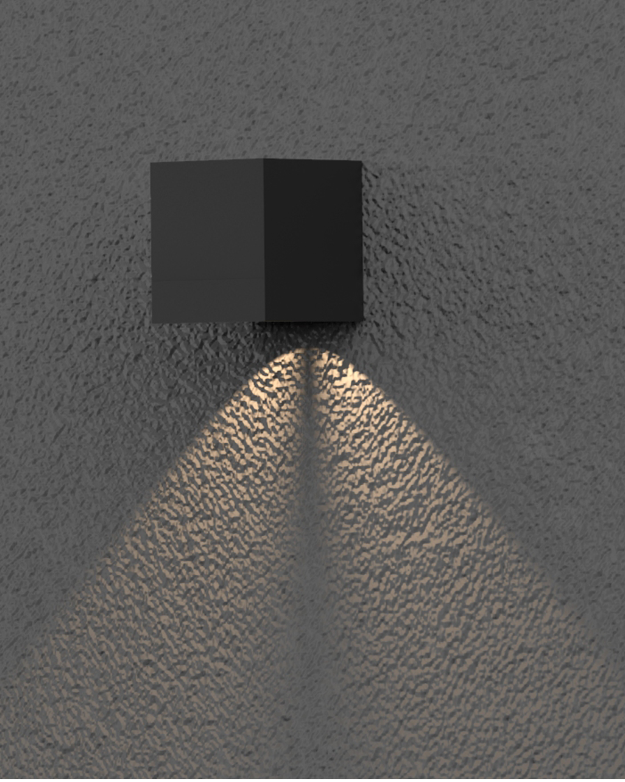 This simplistic, classic design boasts sharp corners to entice onlookers with shadow play. The powder-coated black finish adds a sense of elegance and unites the form and functionality of this light to suit all exterior settings. Suitable for outdoor spaces, this light is available as an up-down light emittance or just downward lighting offering an indirect glow to your walls.