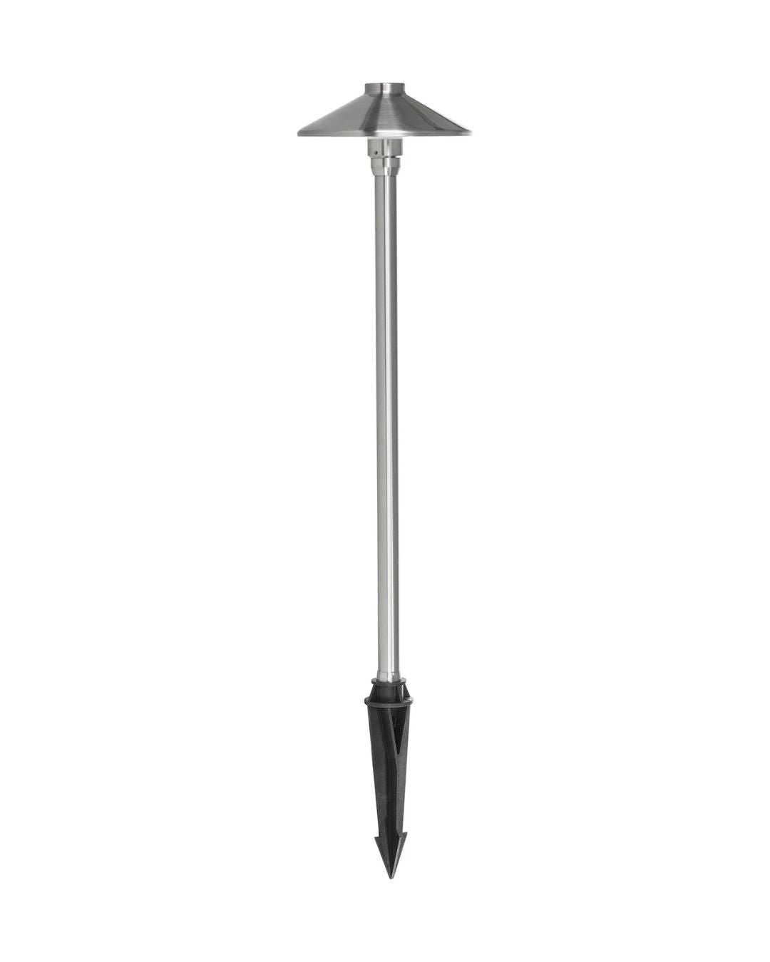 With its flared shade and assorted finishes, this garden spike light is ideal for modern exterior areas. Made from solid brass, solid copper, or marine grade stainless steel and with an IP rating of IP65, this fitting will withstand the extreme Australian climate. Featuring a 3W G5.3 TRIColour globe making it easy to switch between light temperatures to suit the environment.