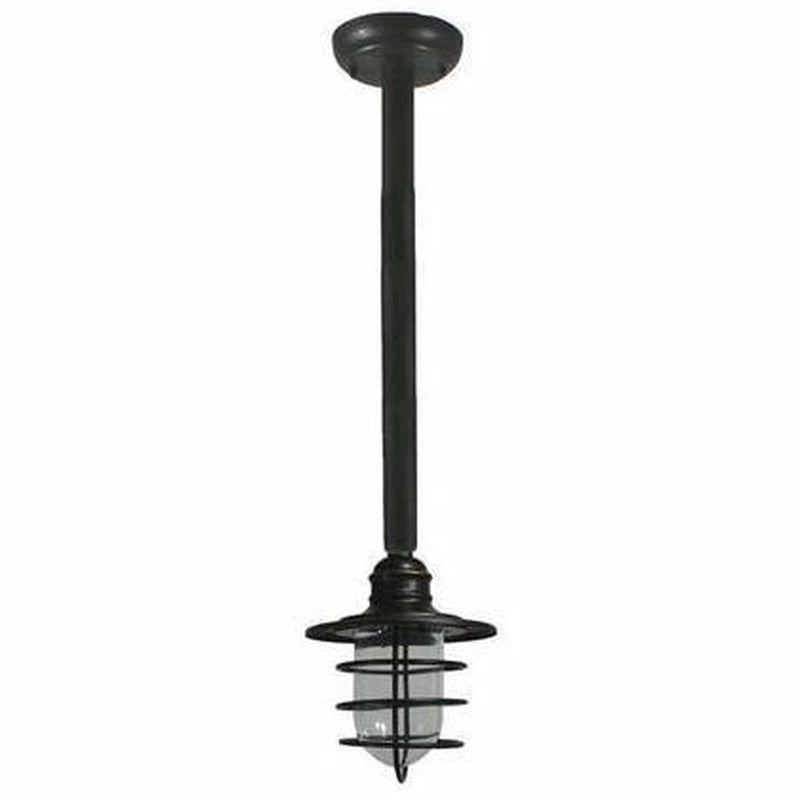 This Industrial Nautical Style Rod Pendant features an antique bronze finish and is ideal for enhancing a variety of outdoor settings.