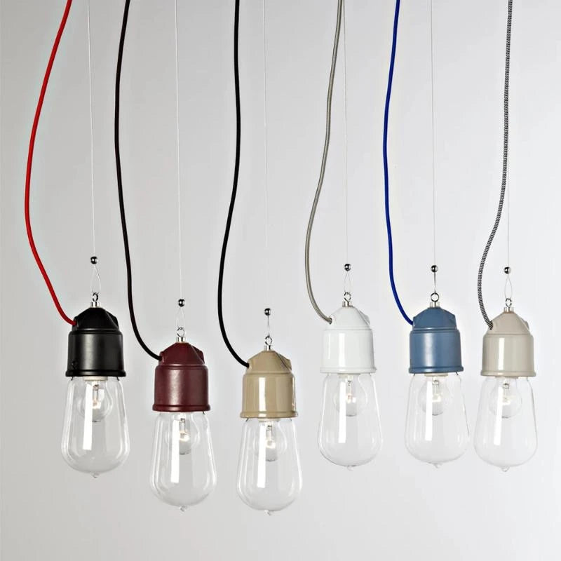 The Italian Industrial Single Pendant Light is inspired by the farming tradition of barn house evening feasts, whereby the light was produced by oil lamps on a cable. Our design allows to create a very flexible system that can be used indoors or out. Enjoy using the different coloured canopies to create the atmosphere you desire. Designed to perfection in Italy. This pendant light can be customised into a festoon light across your space (as pictured in the second and third image). Please get in touch with us if you would like to create a custom order.