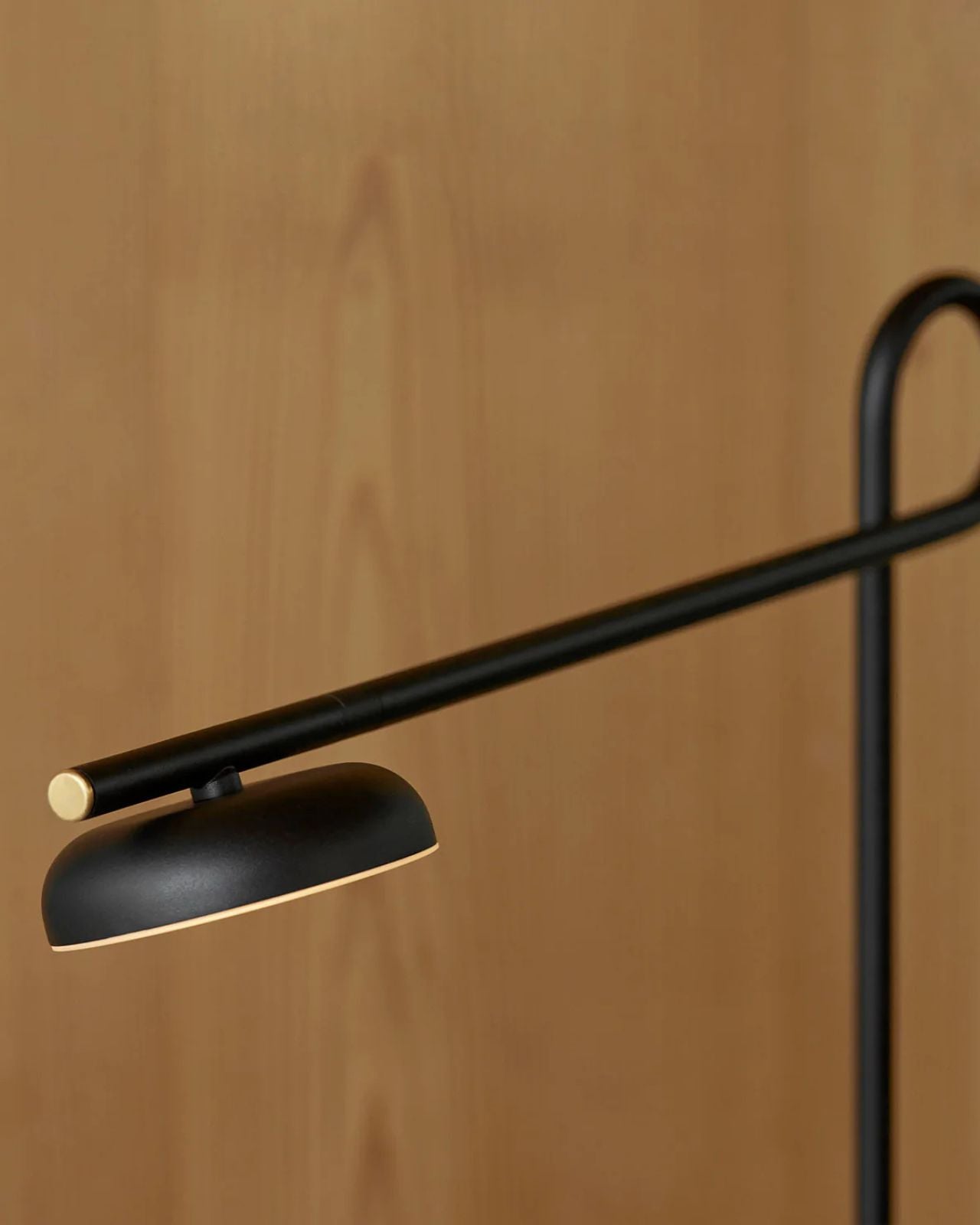 The Looped Floor Lamp combines sculptural style with practical elegance. Inspired by the flowing motion of skateboarding and snowboarding tricks, its design captures movement in a single, smooth curve. The slim steel frame arches gently from base to arm, forming a looped shape that is both modern and smooth. Available in a matte black or soft beige finish, this fitting's minimalist structure is accented by a brushed brass touch dimmer, discreetly positioned on top of the lamp head. The head itself can be rotated to direct the warm LED glow precisely where it's needed, while the base turns freely for additional versatility.