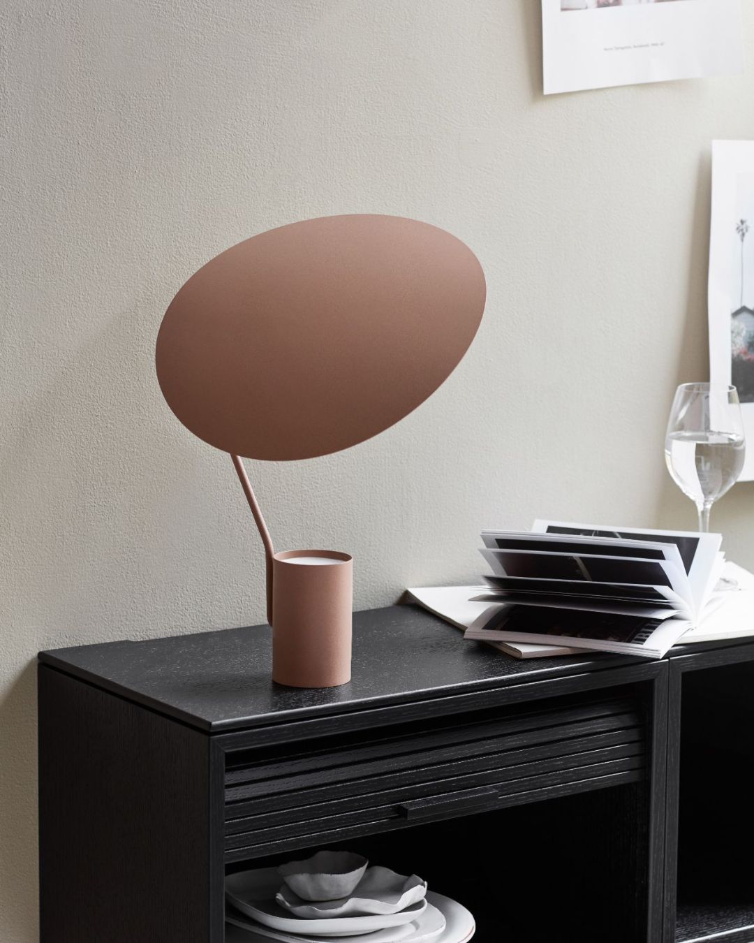 Playing with shadow and light this table lamp draws inspiration from the shape of a tree leaf that creates this organic design. The white LED light is directed upwards from the base directly onto the adjustable shade that captures the light and reflects it onto the surrounding surfaces. Created by steel and finishes in two powder-coated options: Matte Black or Beige.