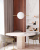 Art Series | Geometric Spherical Pendant | Single over a dining table in a modern warm neutral room