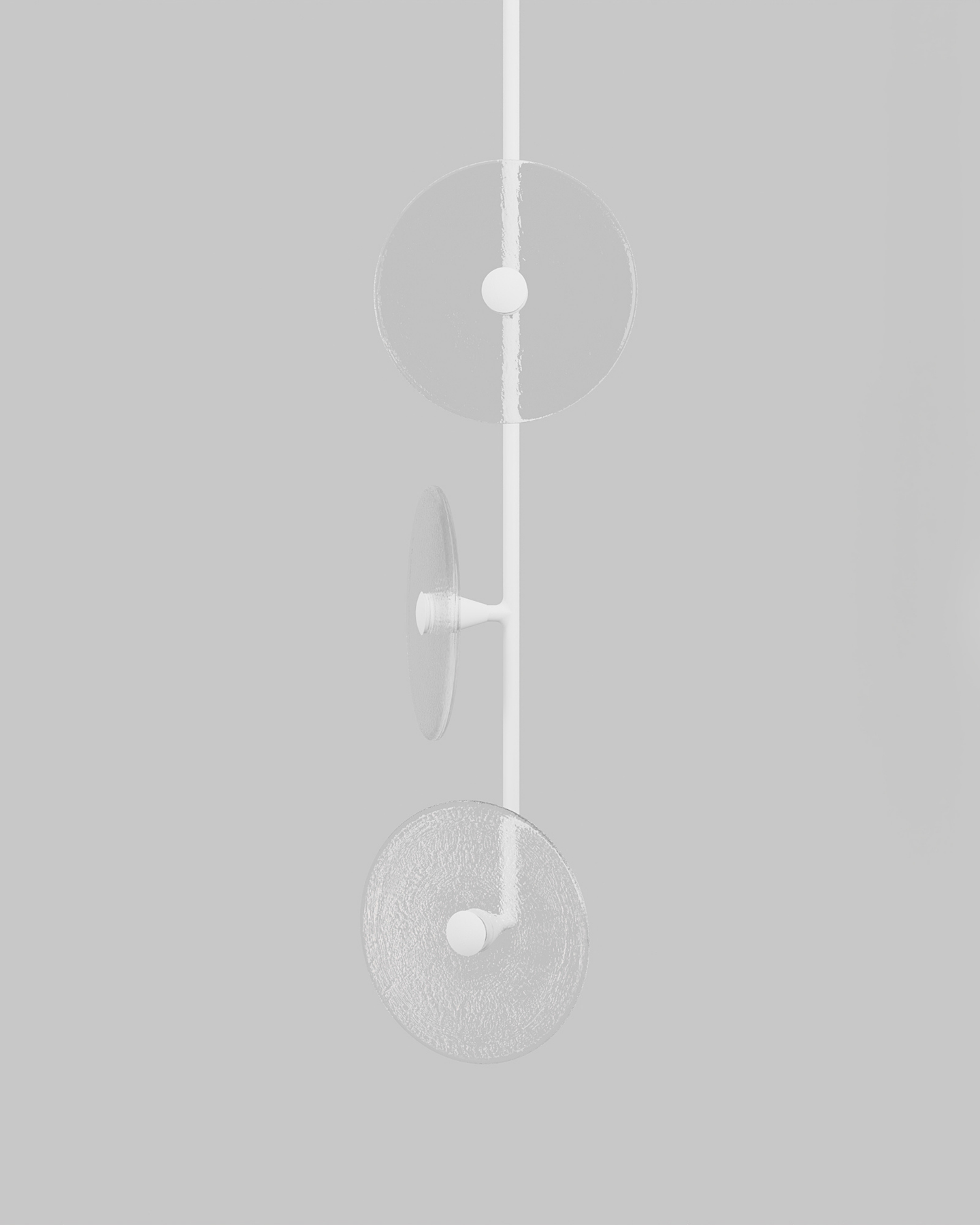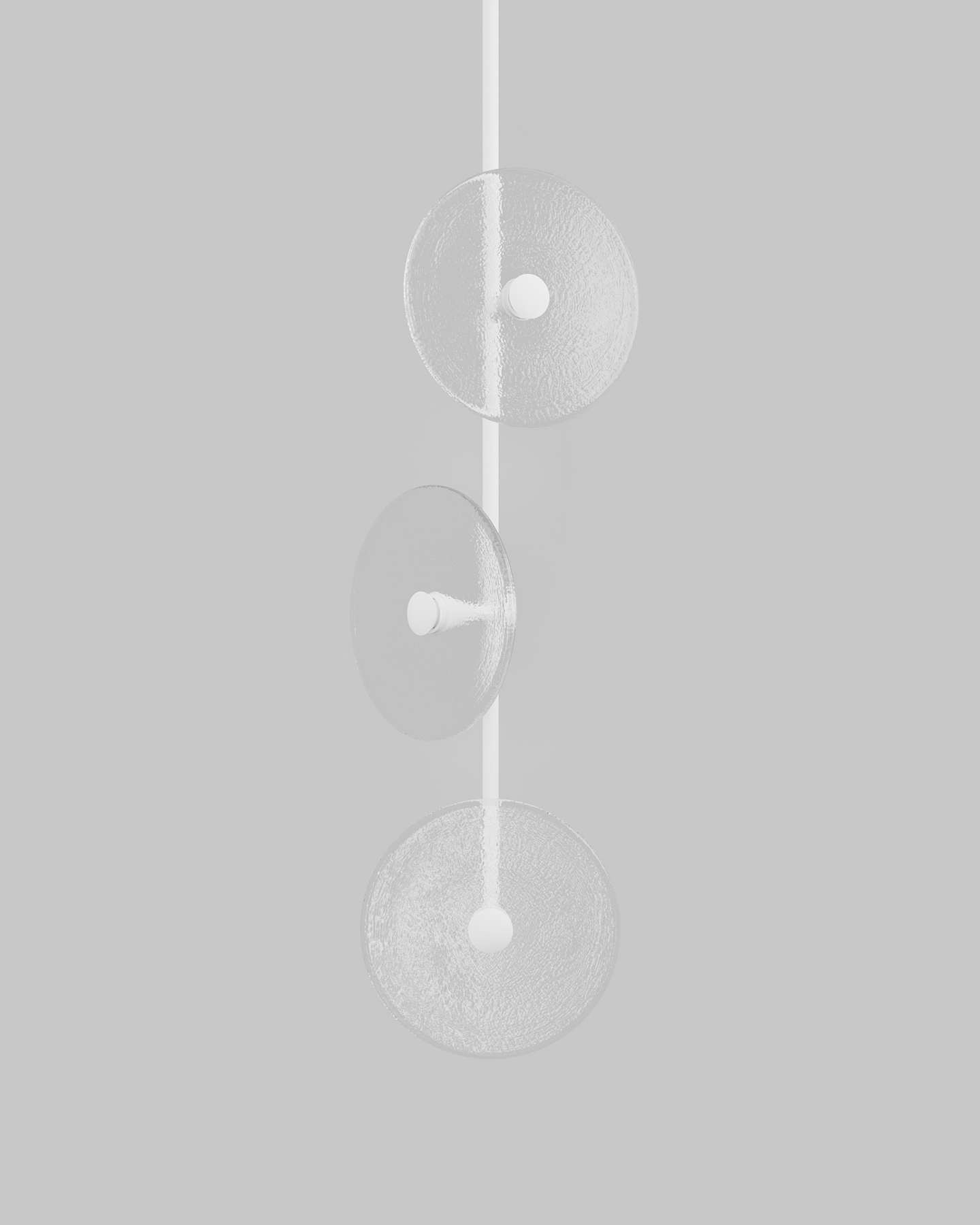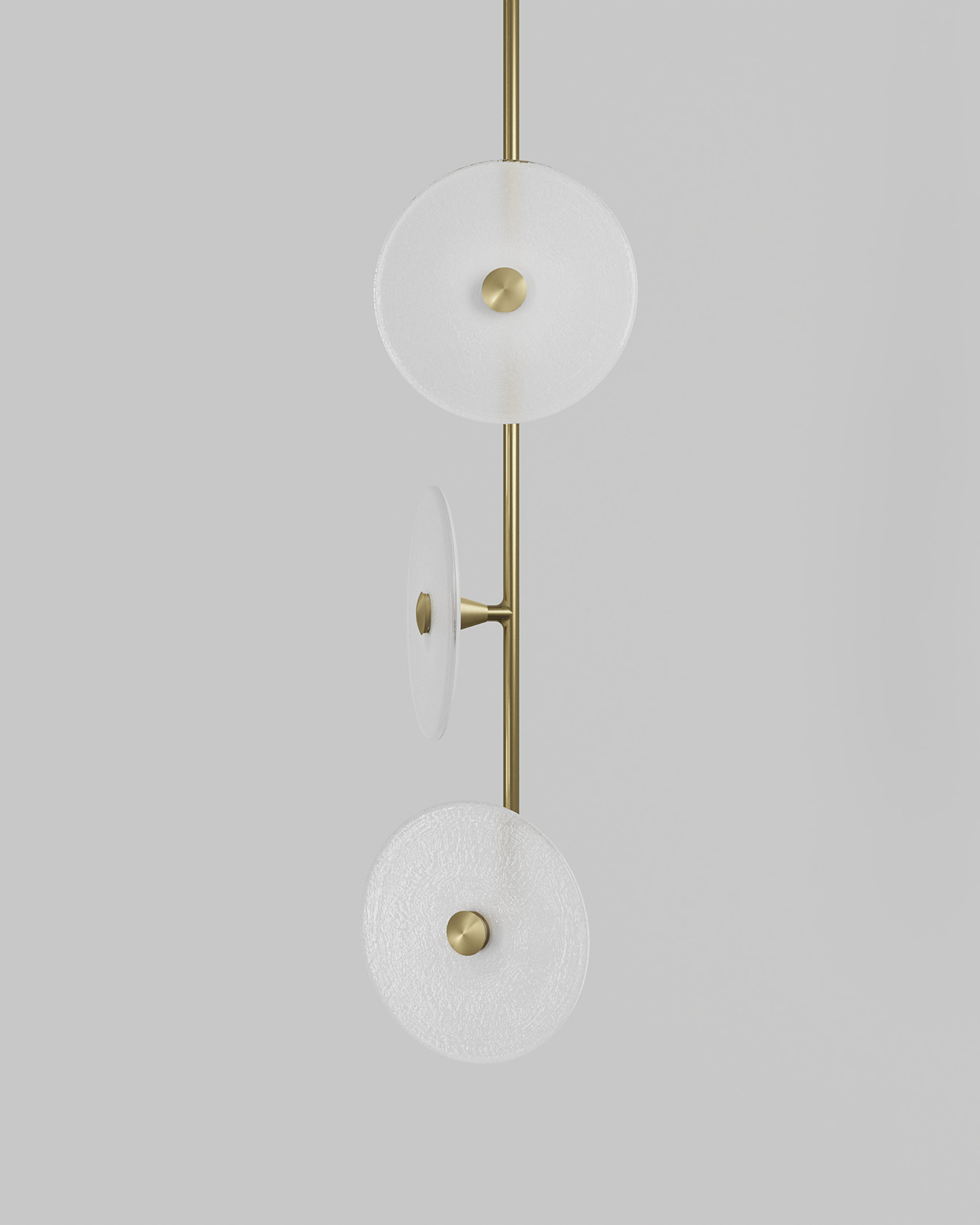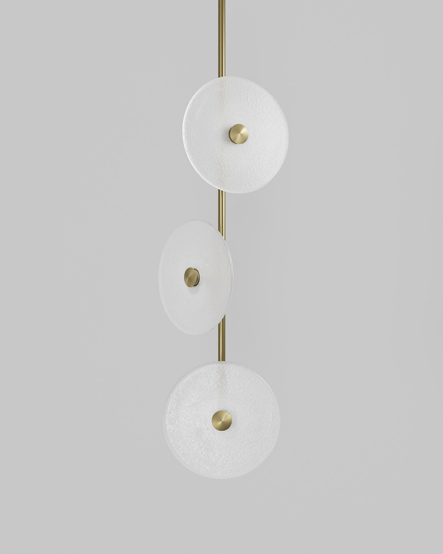 Custom trio pendant light with organic glass discs in warm tones, displayed on neutral grey background.