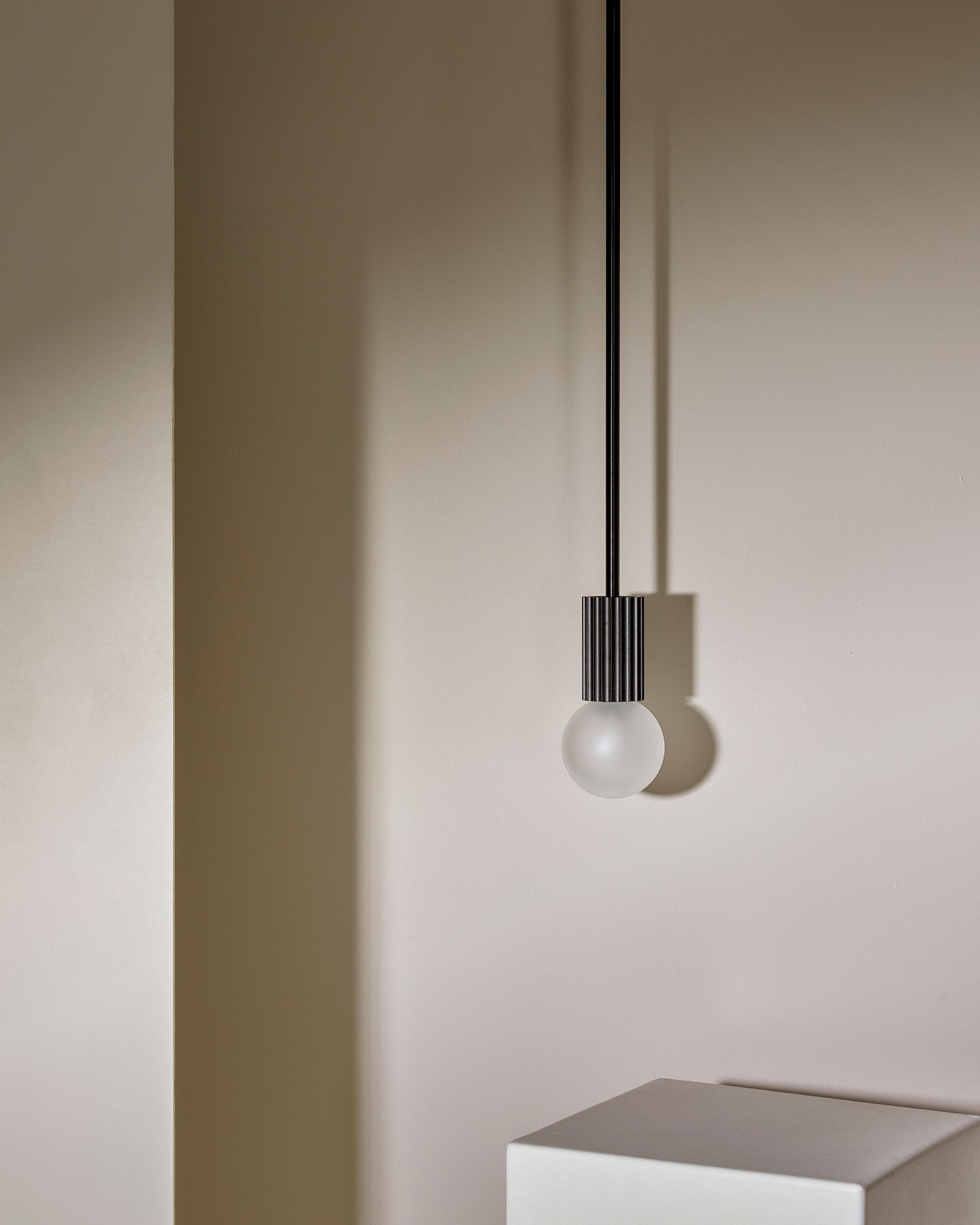 Fluted Brushed Black Suspended Rod Pendant | Attalos