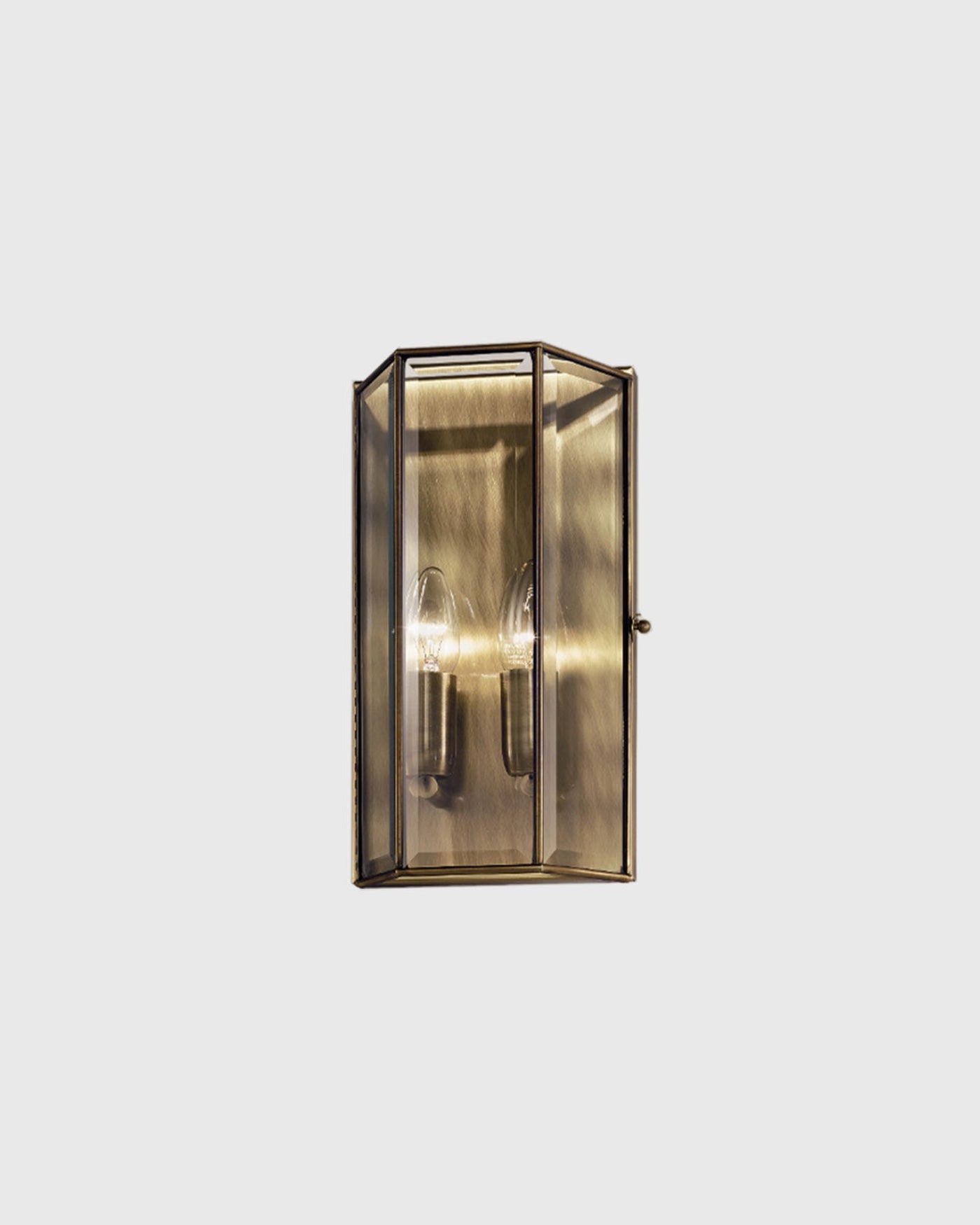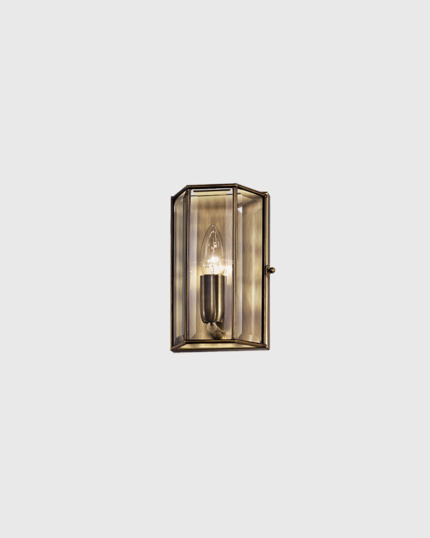 Embracing Italian craftsmanship and modernity, this wall light is inspired by the tradition of bookbinding and is entirely handmade in brass with burnished finish and bevelled glass. Featuring a rectangle geometric shape and available in small or large size, this fixture will suit traditional or modern interiors and will ideally diffuse a warm light in corridors, living rooms or entrance halls.