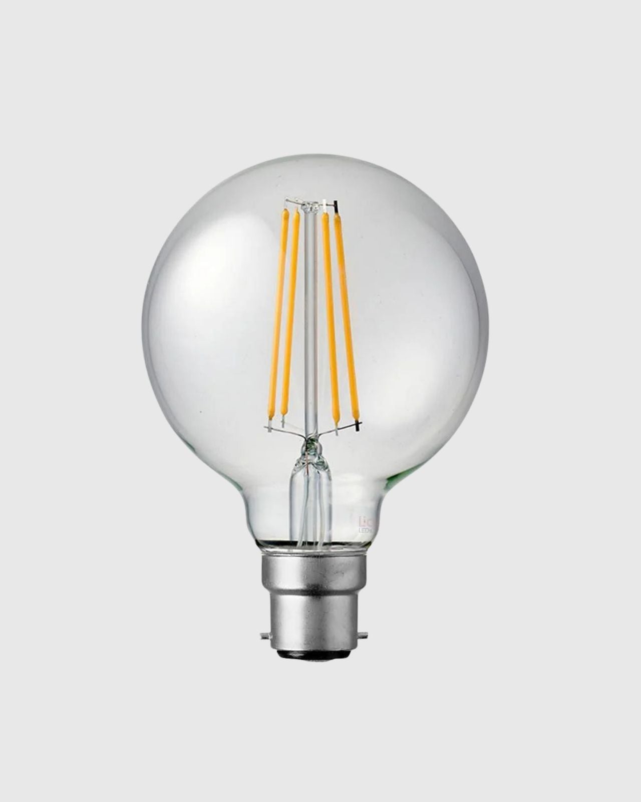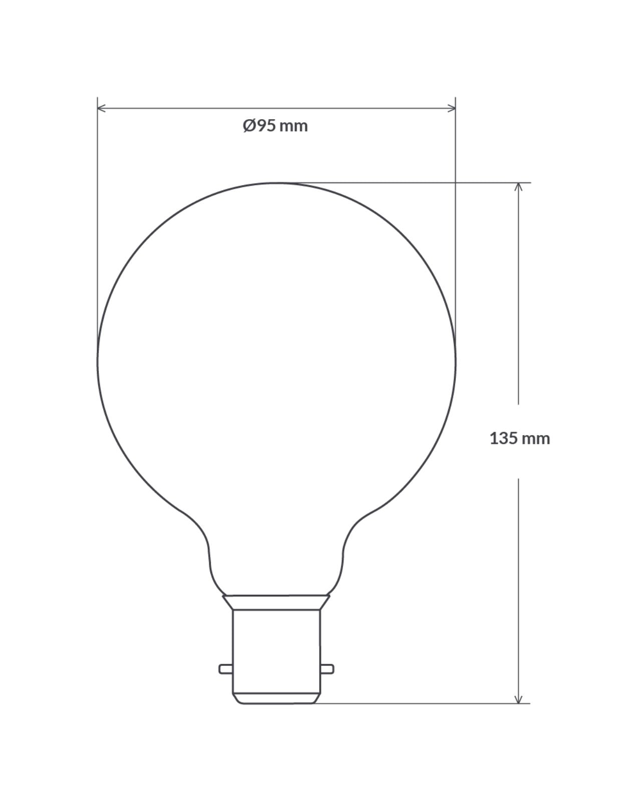 The 8 Watt Dimmable G95 2700K LED Filament Light Globe (B22/Bayonet Cap Configuration) is an elegant lighting device specifically designed to bear a strong resemblance to the ordinary incandescent light bulb.. As with all LED lighting products under our Classic Collection, the G95 features unique multiple filaments of LEDs; these have been strategically placed to ensure a wide beam spread.