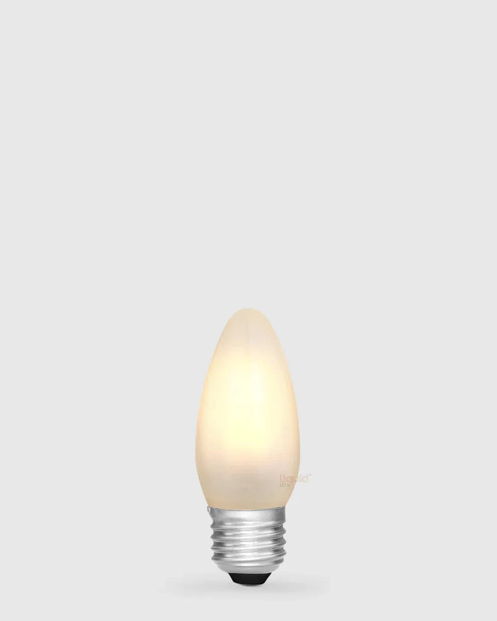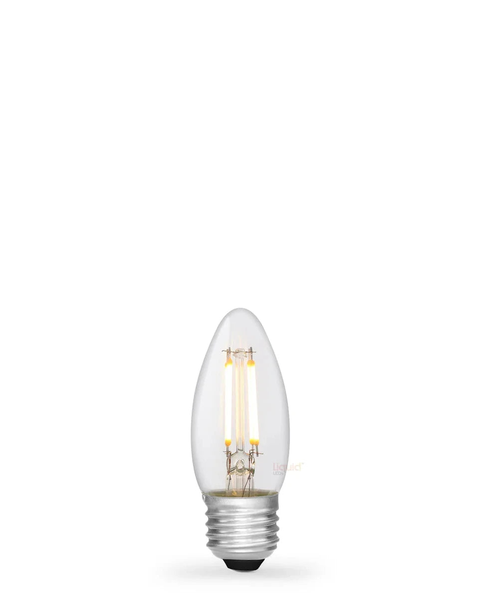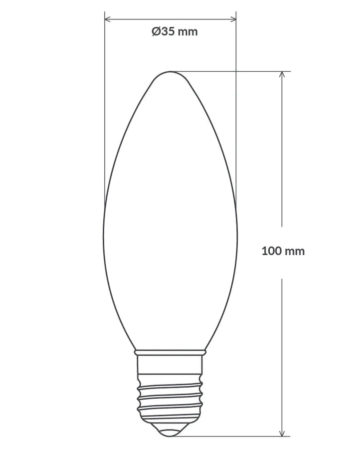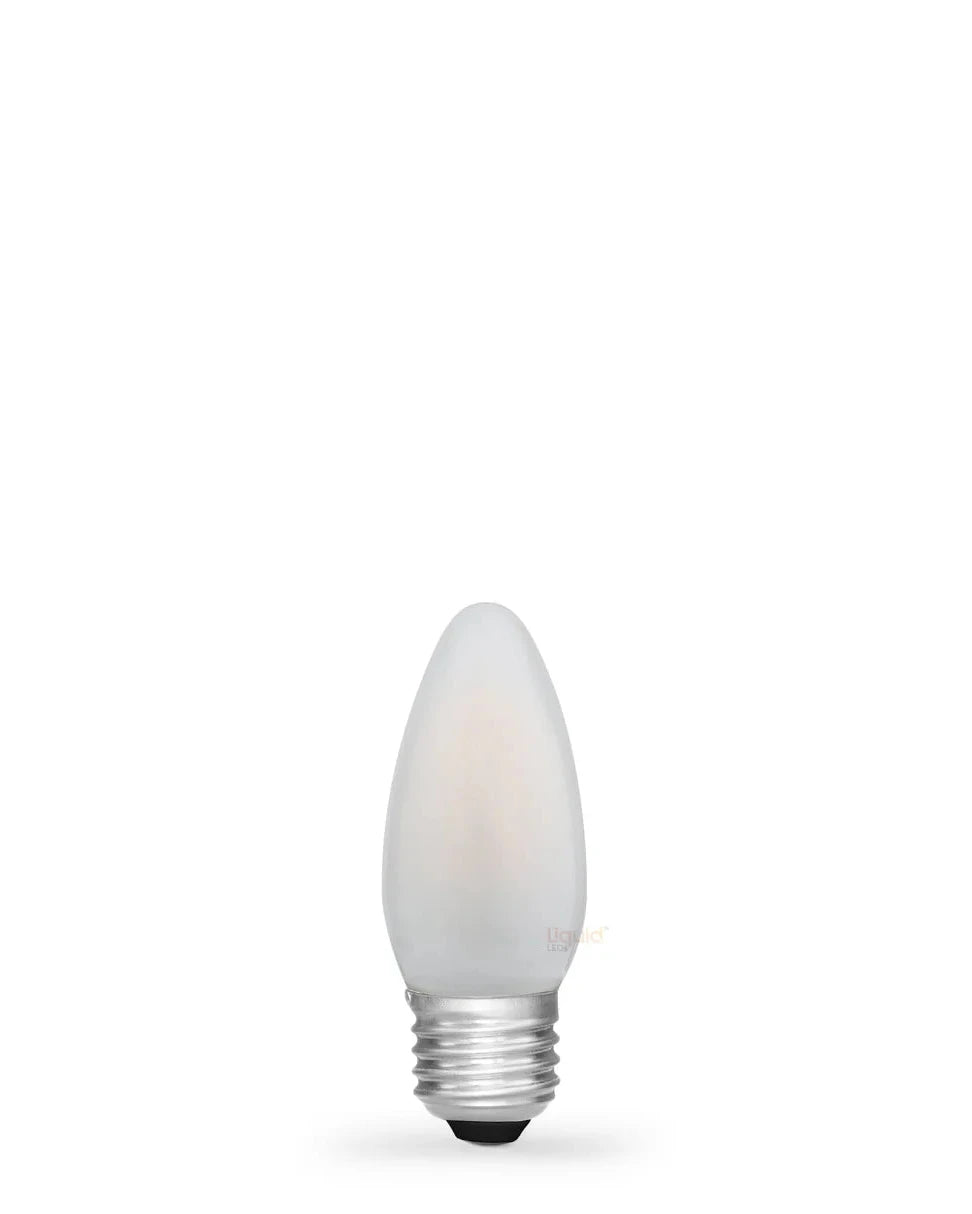 Featuring an elegant, candle-shaped profile, this 2700K filament bulb is dimmable and is the ideal lighting solution for decorative lighting situations. Best used with chandeliers, wall-mounted lamps, and candelabras to mimic the look of a candle. Choose between a frosted finish for a more diffused light, or clear for a classic filament look.