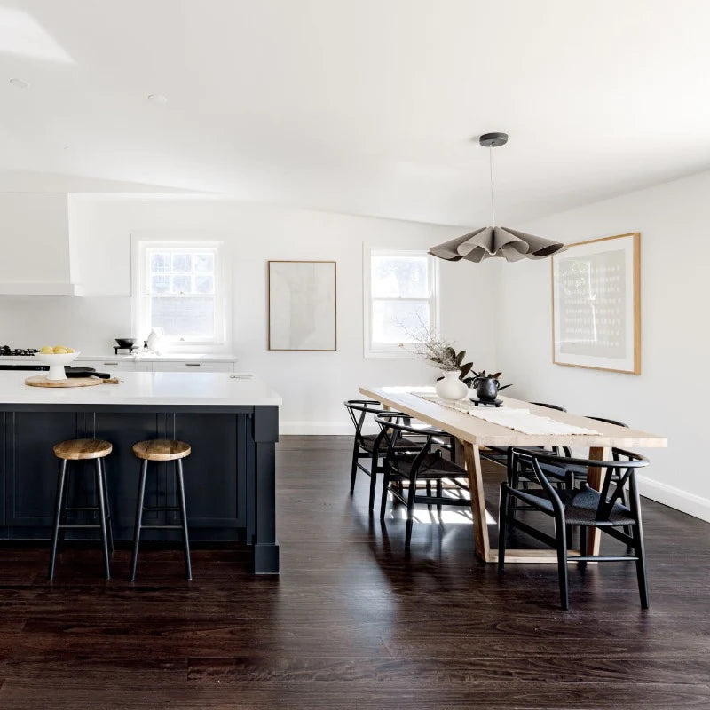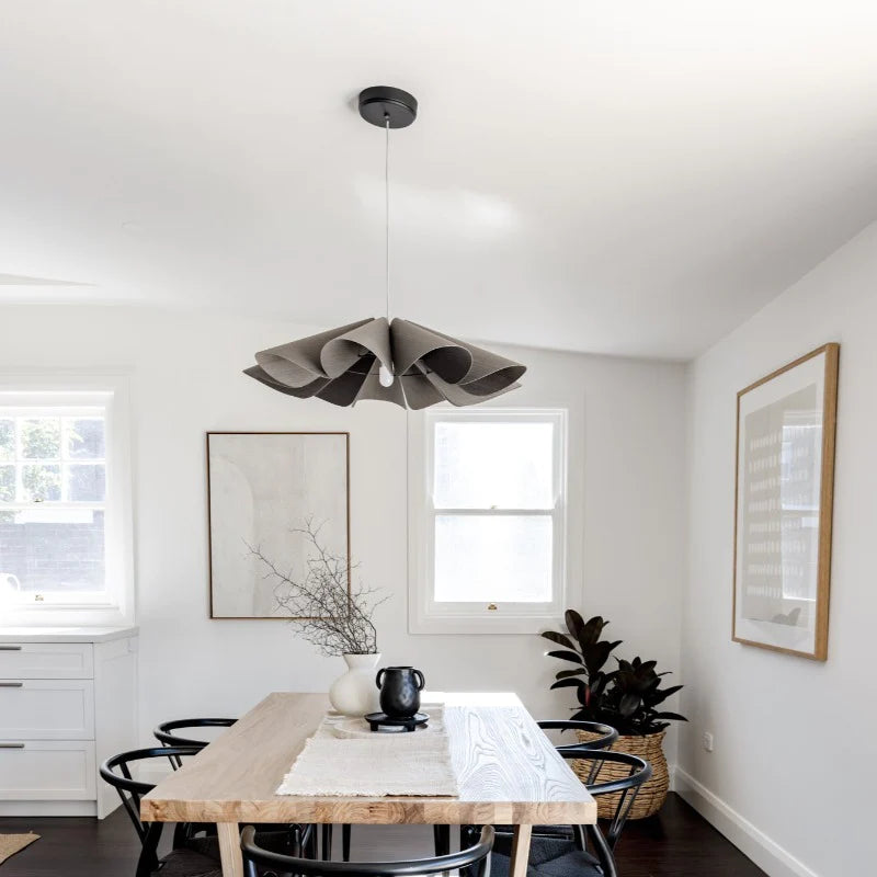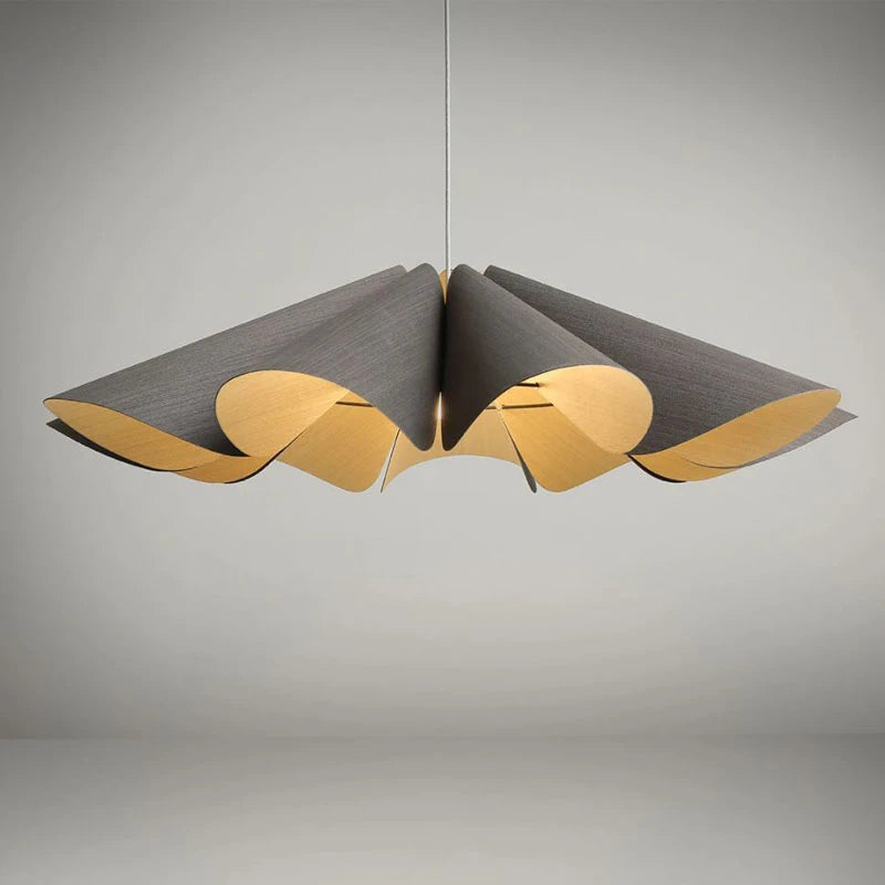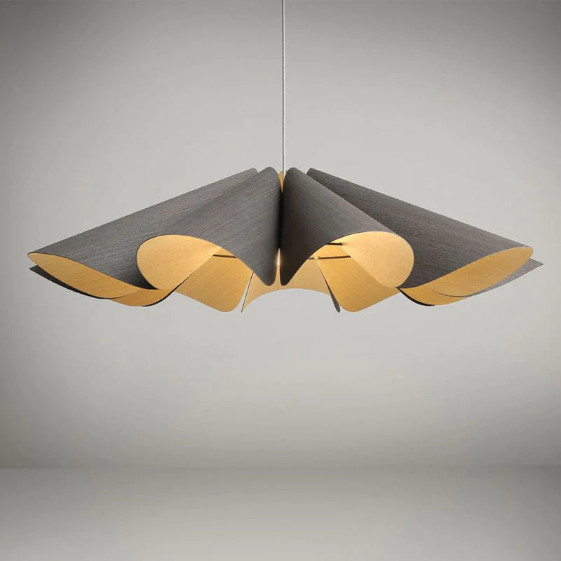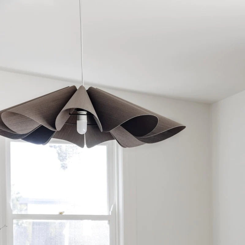 Crafted from reconstituted wood Veneer this pendant showcases an artistic design that will enhance a range of styled interiors. The shade's folded form is reminiscent of a flower and is available in assorted colours and sizes to match any space. Casting downwards-facing illumination this pendant is well-suited for creating ambient light in entranceways, over a dining room table and in living areas.