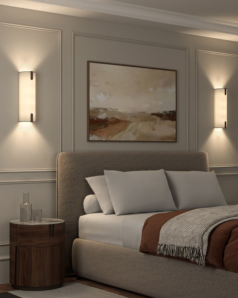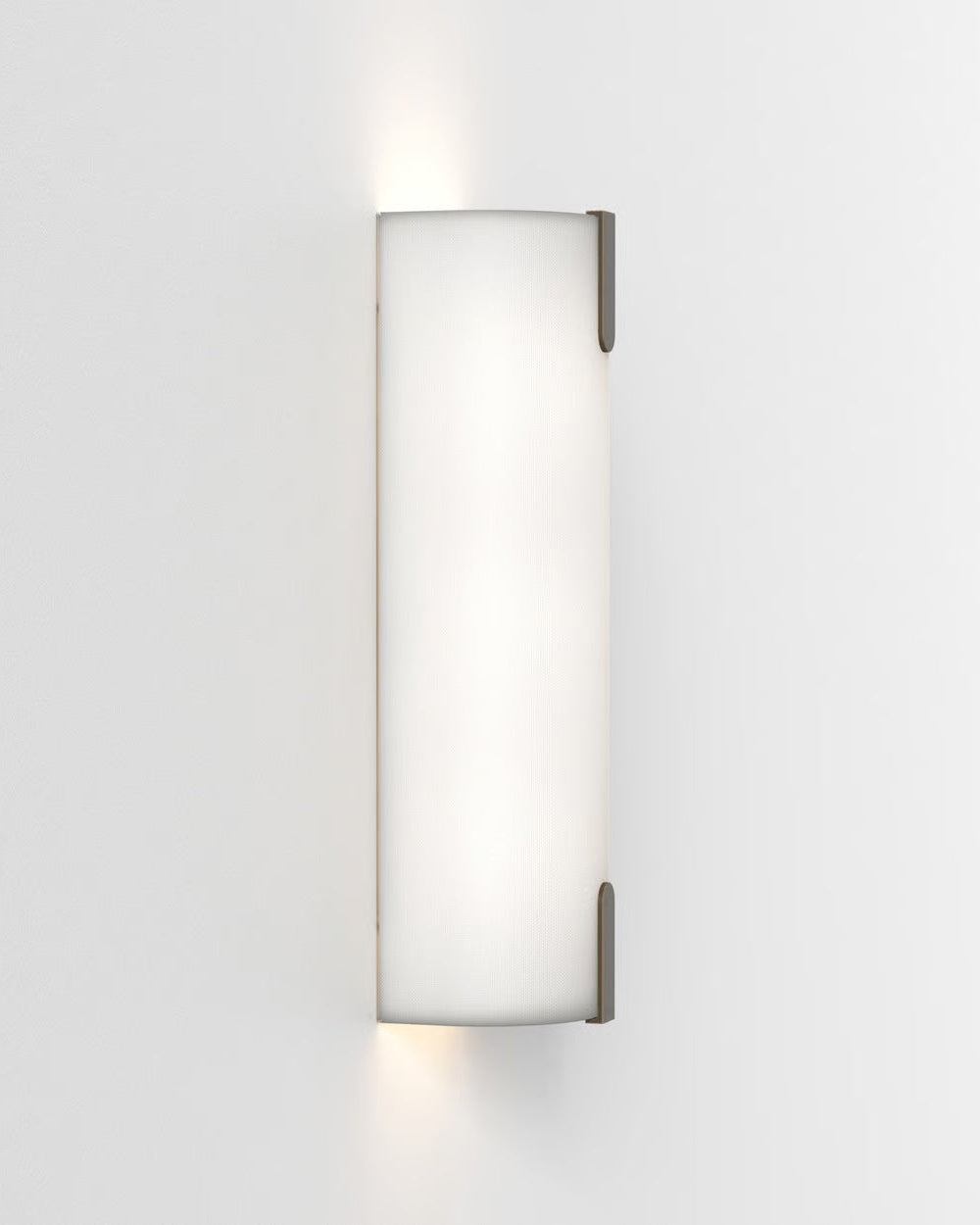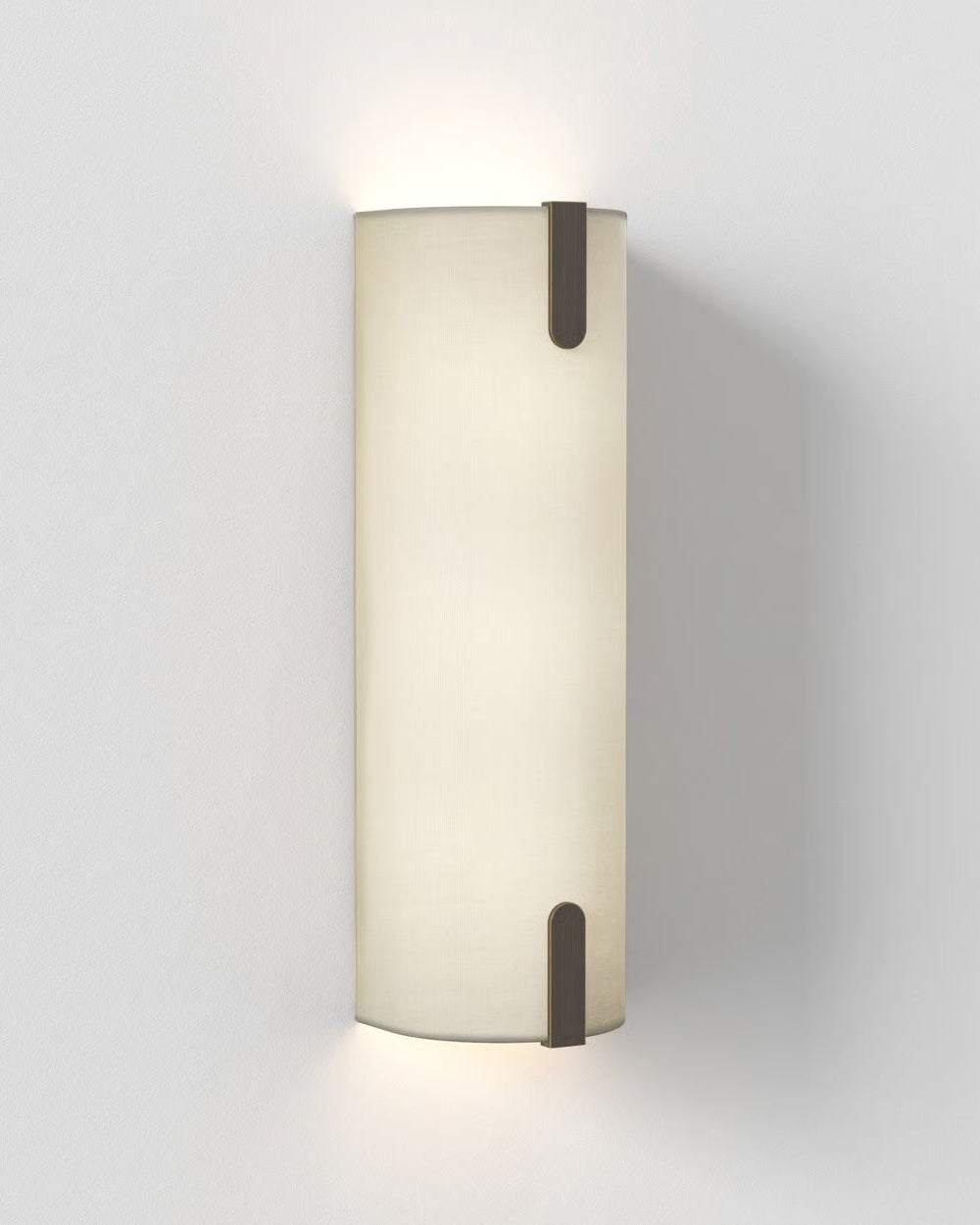 This simple and timeless wall light is featuring a classic pillar shape with a replaceable shade made from cotton blend fabric. Some crisp pressed metal details embellish this elegant lamp, which includes two light bulbs for an optimal up and down illumination. The fabric can be in white or putty finish and the lamp is available in two different sizes. It is ideal for modern living rooms, corridors or hospitality interior spaces.