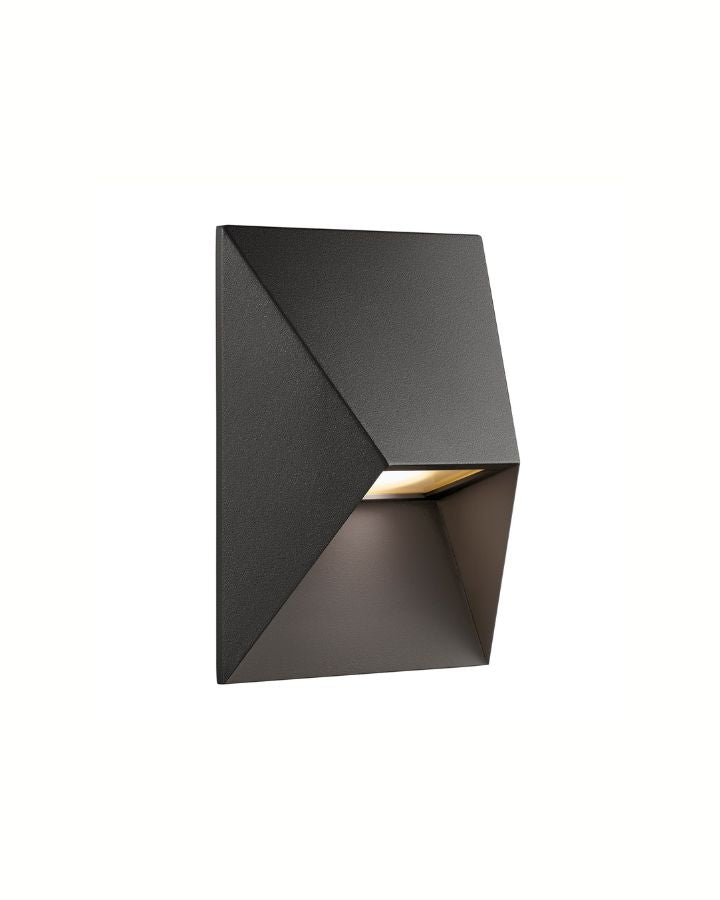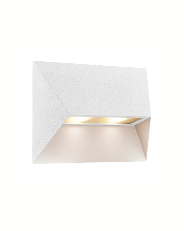 Timeless and modern, this wall light will enhance any outdoor space with its unique geometric shape. Designed by Danish duo Says Who and made from aluminium, the oblique shade will provide a nice look from all the different angles and will spread a pleasant light downwards. Choosing from white, sanded or black finish and from small or large size, this fixture is IP54 rated.