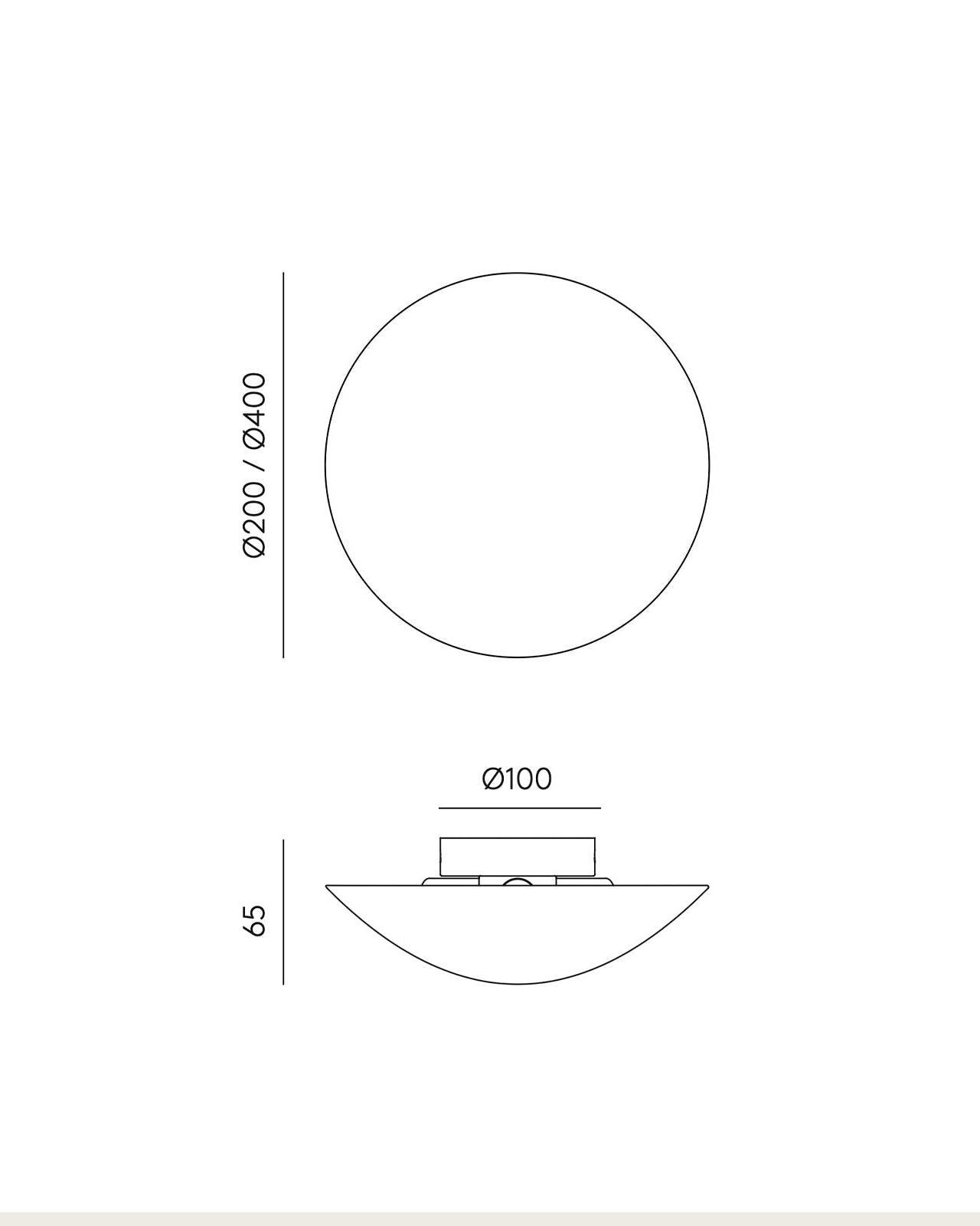 Technical drawing of a circular wall-mounted light fixture with dimensions.