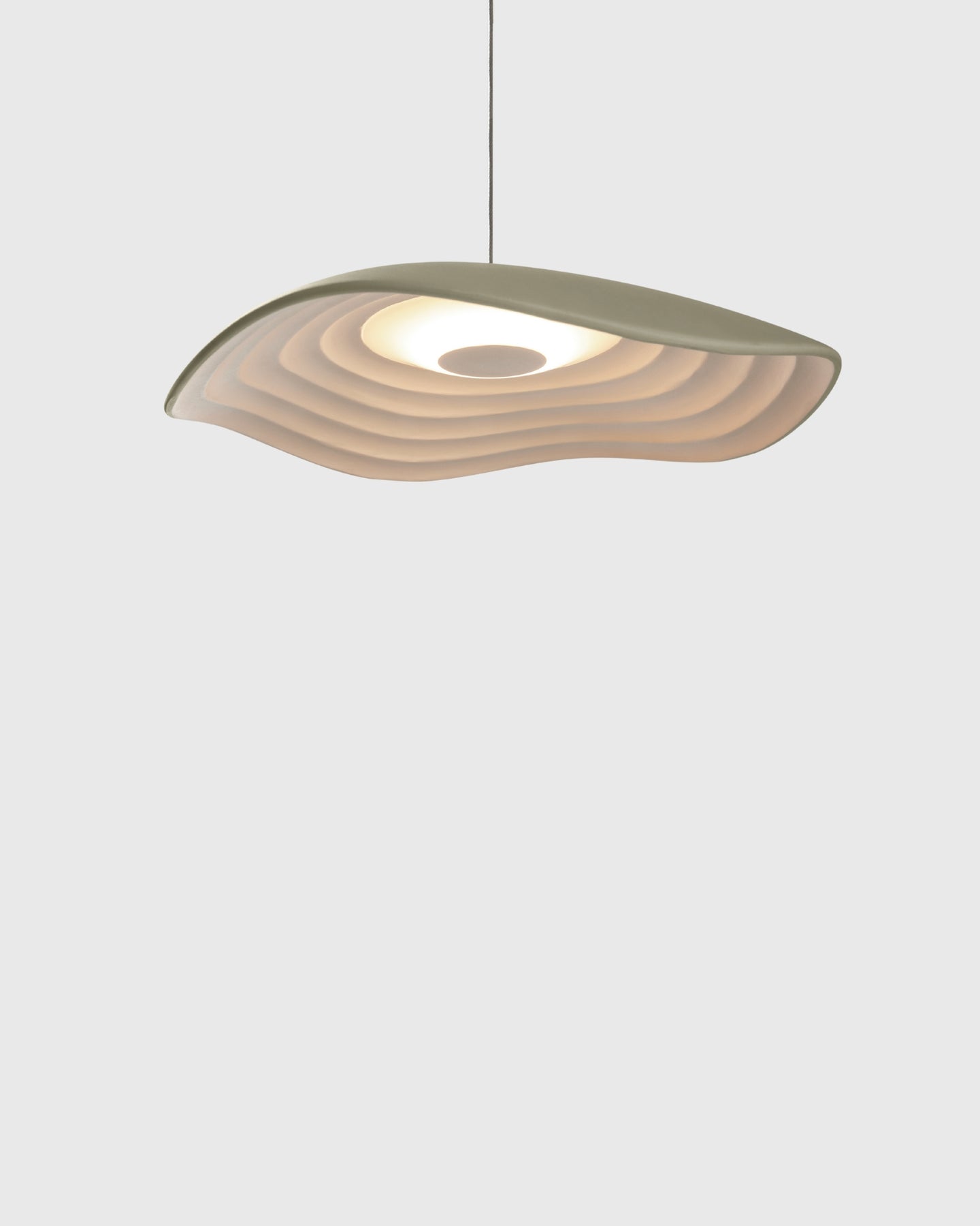 Reminiscent of rolling waves in the ocean, this pendant features a smooth exterior and a wave like interior which adds to the unique form of this pendant fitting. With a calming and gentle osculating form, the Minimalist Wave Pendant Light is designed and made in Spain. Paired with a 6.5W LED illumination, to provide a warm 2700K warm glow to suit a interior spaces which are Japandi, Contemporary and Minimalist in design.