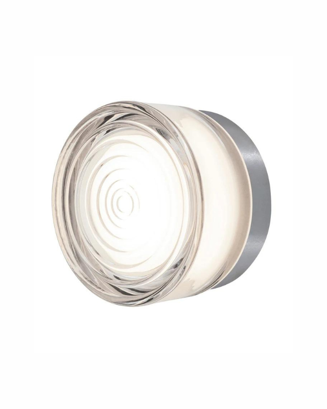 The Thick Textured Glass Wall and Ceiling Light is a retro-inspired modern lighting fixture perfect for enhancing interiors. Designed for versatile placement, it can be mounted on walls or ceilings, making it ideal for bedrooms, hallways, living areas, or bathrooms. Available in three textured glass shades and four metal finishes, this fitting suits a variety of design styles. Equipped with a 5 W CCT LED, the light can be switched between 2700 K, 3000 K, and 4000 K, allowing you to adjust the ambience to match the mood of the room. Choose Fusion or Prisma for transparent glass that casts captivating shadows, or Wave for an amber-tinted shade that adds a warm, inviting glow. Perfect for modern interiors, retro-style rooms, and stylish home lighting solutions.