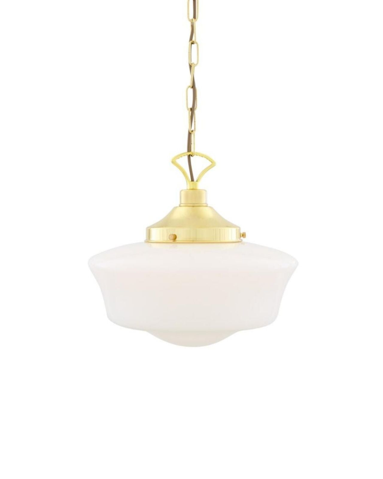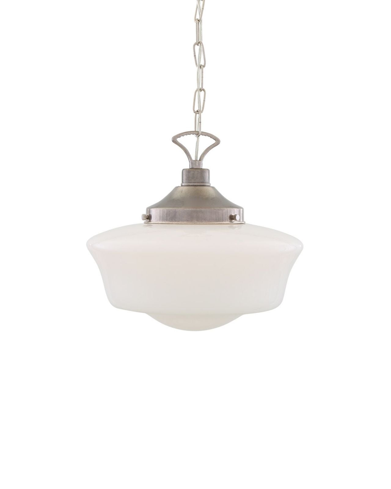 Designed in Ireland, the Vintage Classic Opal Pendant exhibits a modern twist on vintage pendants. Suspended from a simple chain, the timeless fixture features a classic opal glass shade to cast a soft ambient light while adding a traditional 1920s flare to Victorian-styled interior spaces.