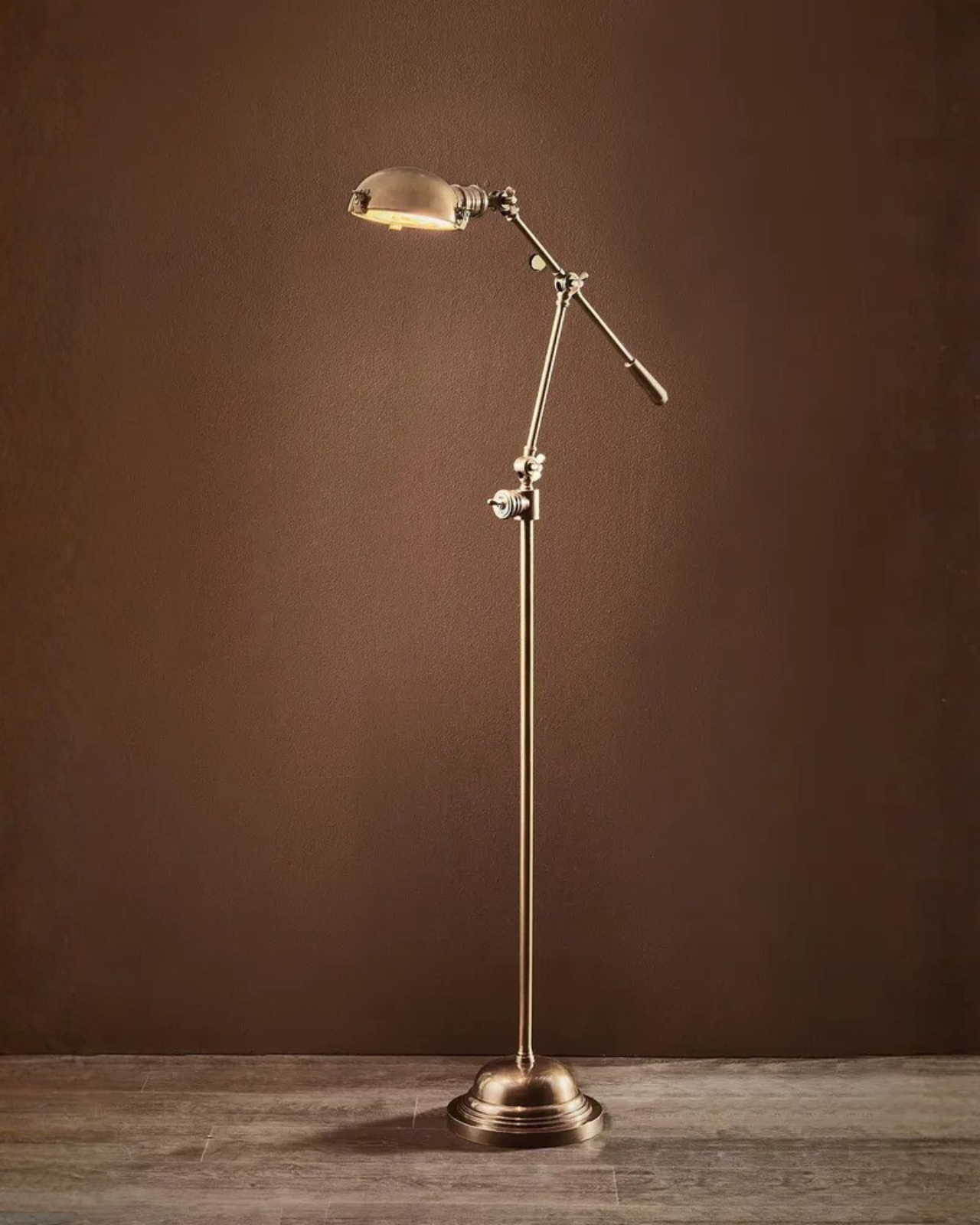 The Antique Brass Readers Floor Lamp offers a timeless, understated design that complements a variety of interior styles. Crafted from solid brass, the lamp features a manually adjustable height ranging from 1.2 m to 1.5 m, allowing the light to be positioned precisely for reading on a sofa or lounge chair. A generous 1.8 m cord and convenient foot switch provide effortless operation and flexibility in placement. Its sleek, sophisticated form combines subtle industrial touches with a classic antique brass finish, making it equally suited to farmhouse, cottage, or vintage-inspired interiors.