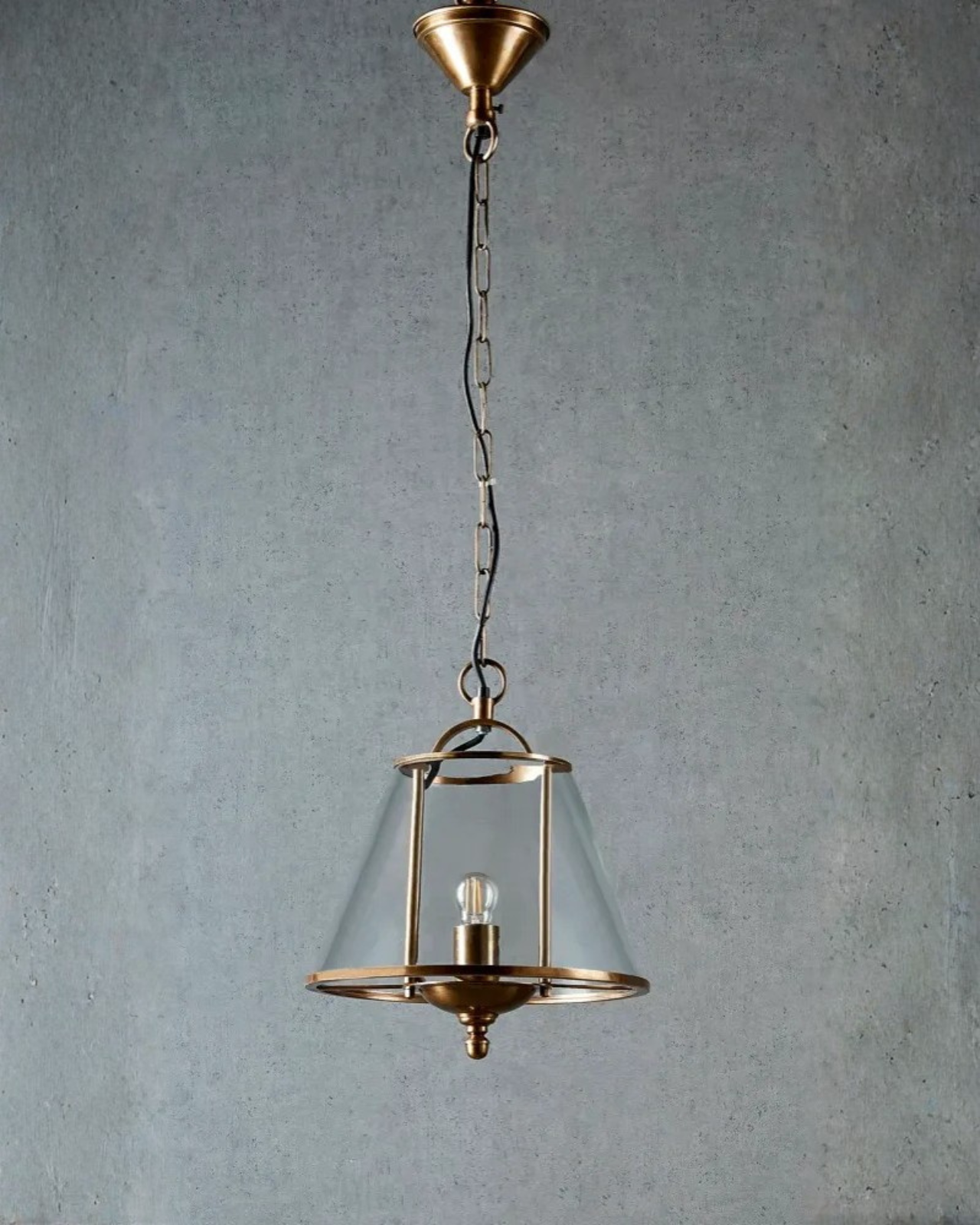 This pendant light features a streamlined brass frame paired with a refined glass shade, balancing structure with transparency. The considered design emits a warm, ambient glow while introducing a sculptural presence within the space.