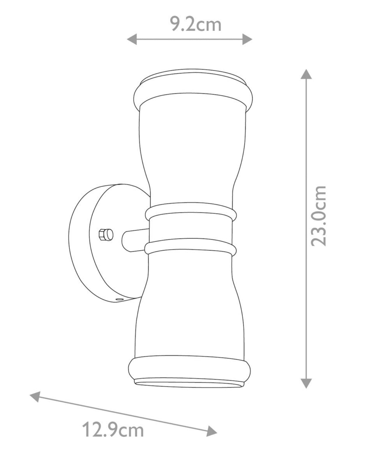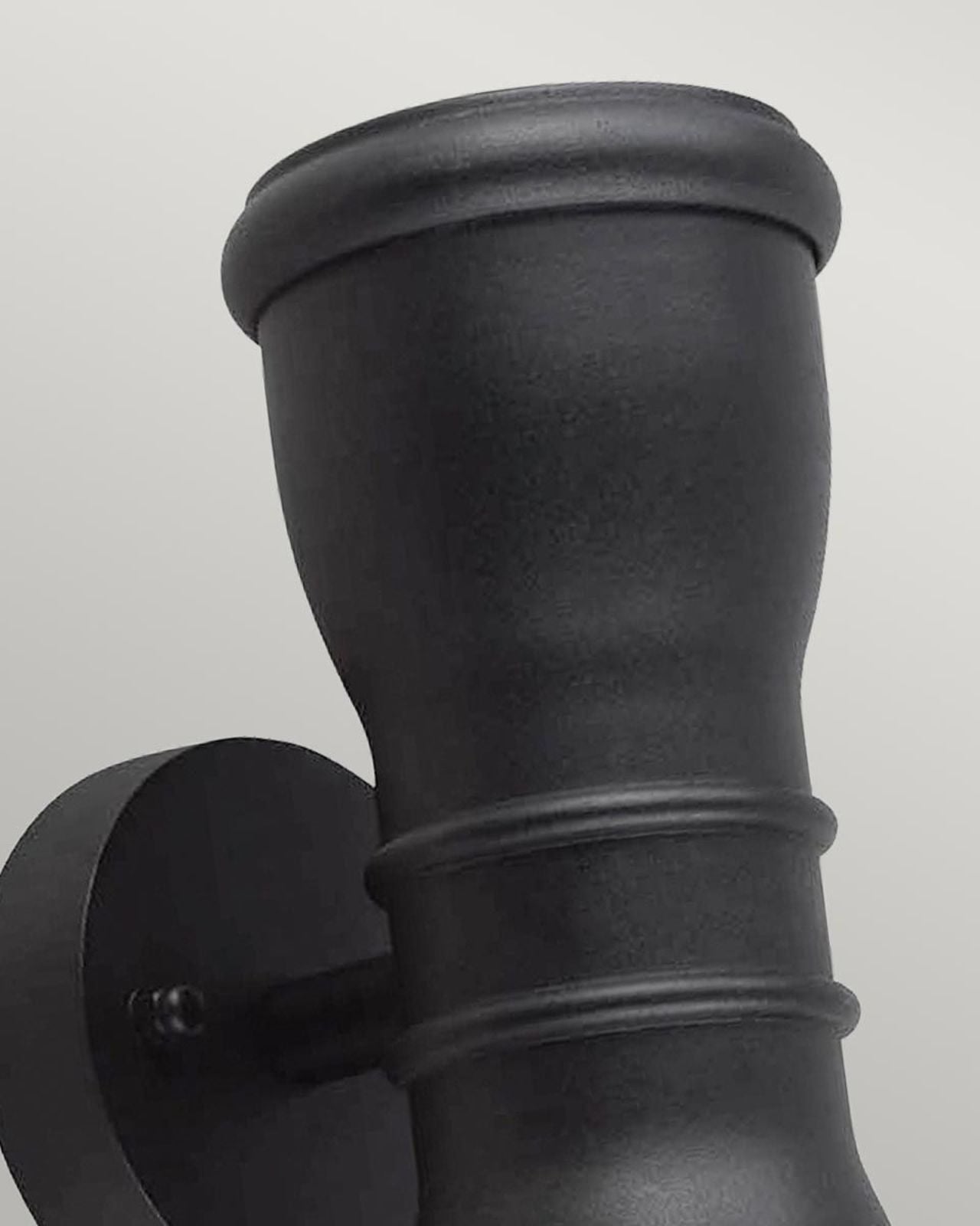 An exterior wall light inspired from the era of flame lanterns. Horizontal lines add that finer detail to the elegant curved frame. A classic up and down light designed beautifully for those traditional interior and exteriors.