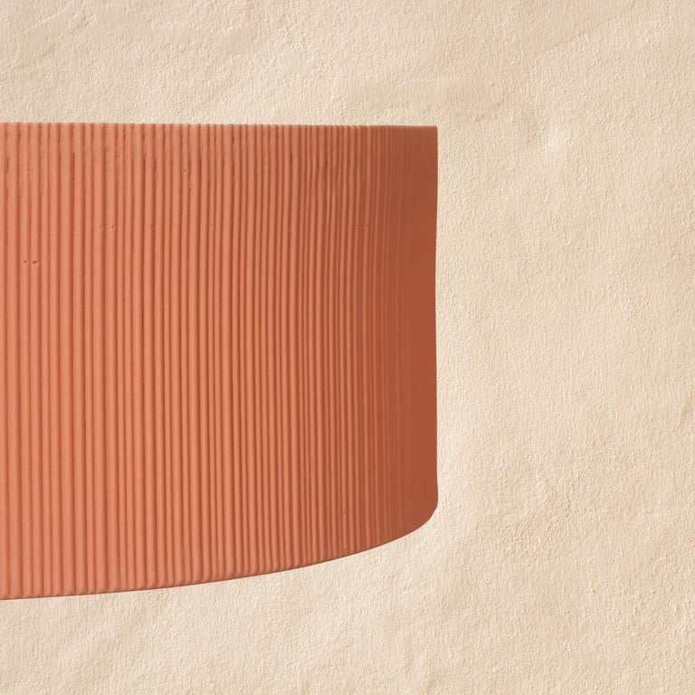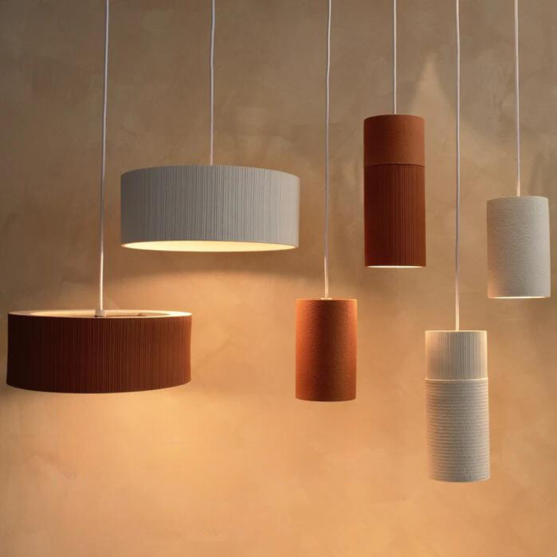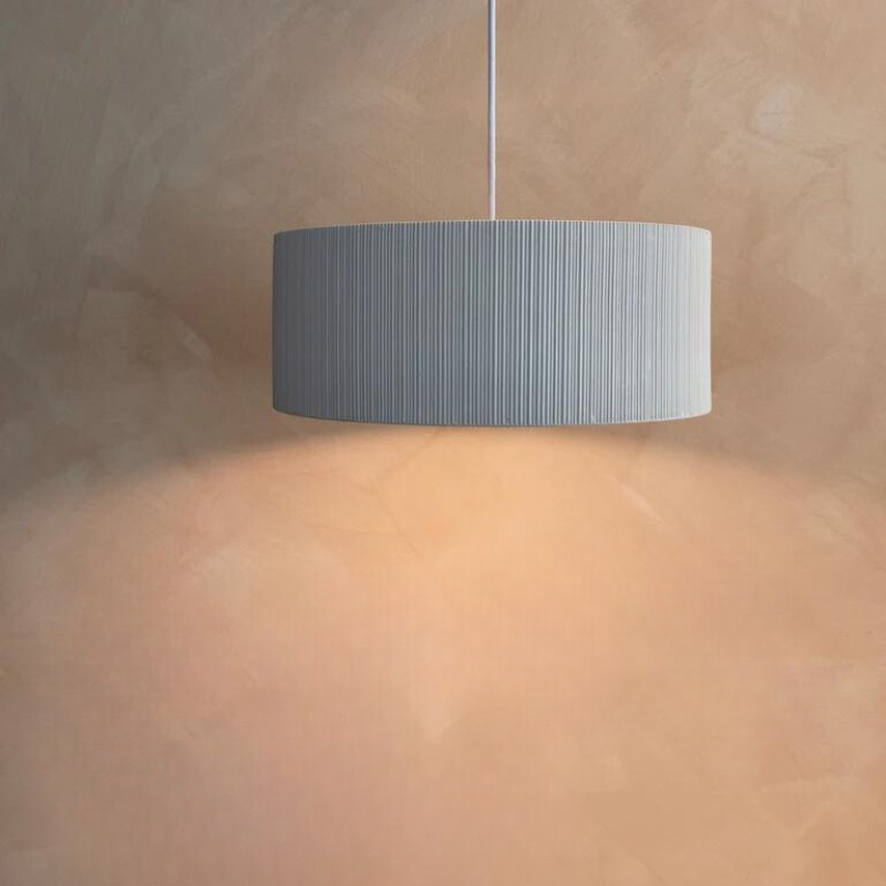 The Textured Wide Shade Pendant Light is a collaboration between mechanisation and craftsmanship. These fittings are 3D printed with clay printers, using hand-carved moulds created by artisans in Southern Spain. This intricate creation process creates a fitting with an alluring texture that is organic and innate, reproduced using modern technology.