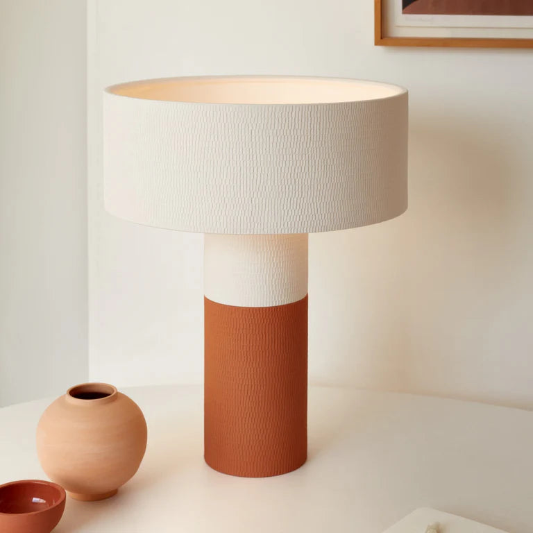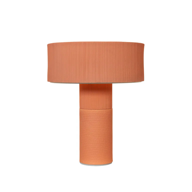 The Textured Wide Shade Table Lamp is a collaboration between mechanisation and craftsmanship. These fittings are 3D printed with clay printers, using hand-carved moulds created by artisans in Southern Spain. This intricate creation process creates an alluring texture that is organic and innate, reproduced using modern technology.  Available in a variety of finishes and textures, this lamp is ideal for contemporary interiors.