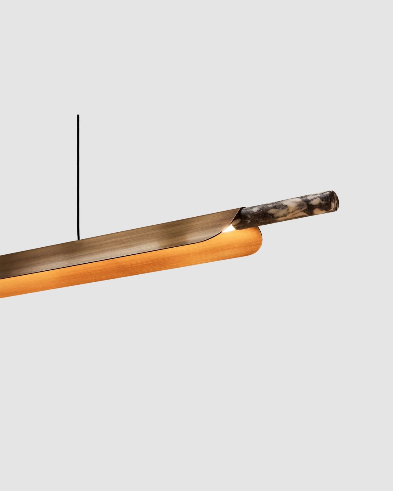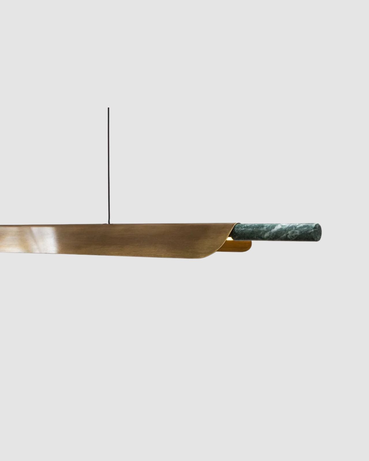 The Formation Luxury Linear Pendant is a modern, sleek light hand-assembled in Melbourne, Australia. Featuring marble or stone tips with a folded metal body that conceals a warm white integrated LED strip. Available in four elegant body finishes, this fitting is ideally places over a bench in the kitchen with matching cabinet handles for a cohesive look. Choose from four marble tip options for a more luxurious lighting option, or two stone options for a more understated linear.