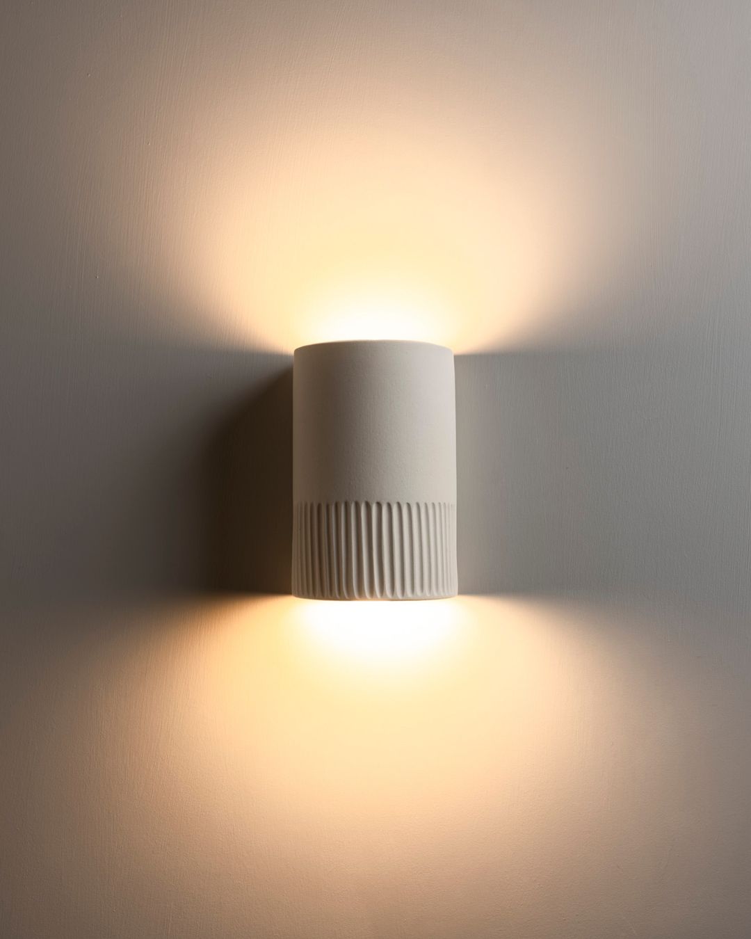 Enhance any interior space with this warm, understated wall sconce. Handmade in Tasmania by firing unglazed smooth clay twice through a slip-cast mould process to ensure consistency. Experience softly illuminated interiors from this dynamic downlight with an intentionally minimal back plate that allows the fitting to stand out, highlighting the handmade indented detail. The raw material hues beautifully complement natural interiors of timber, white or stone walls. Each wall light is made with care and precision, providing an inviting glow that seamlessly blends. With its timeless design, this sconce will add a modern yet organic touch to interiors, elevating home decor.
