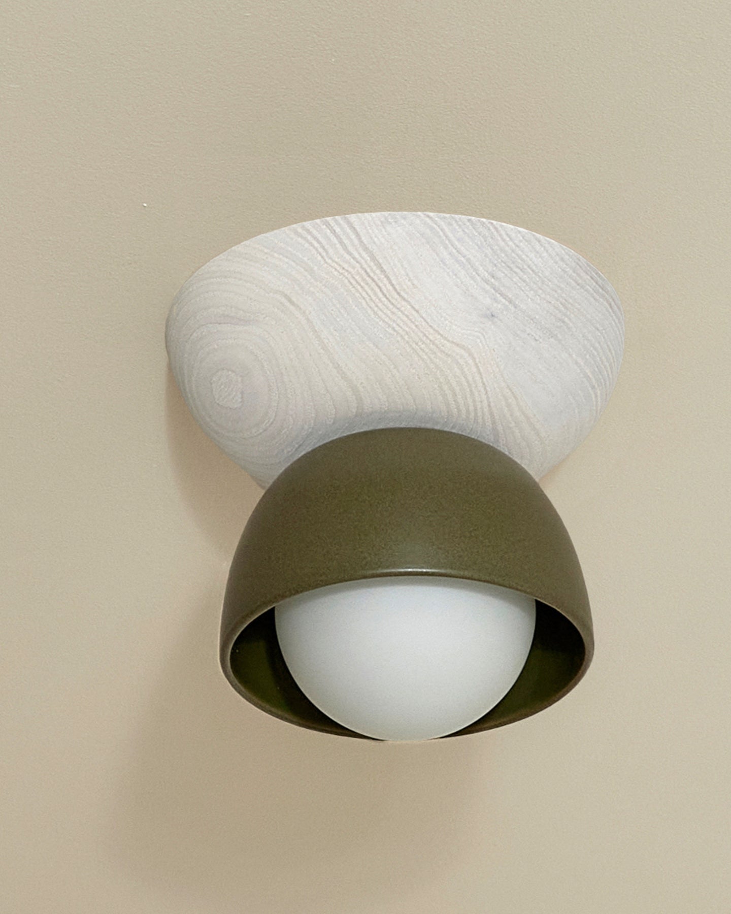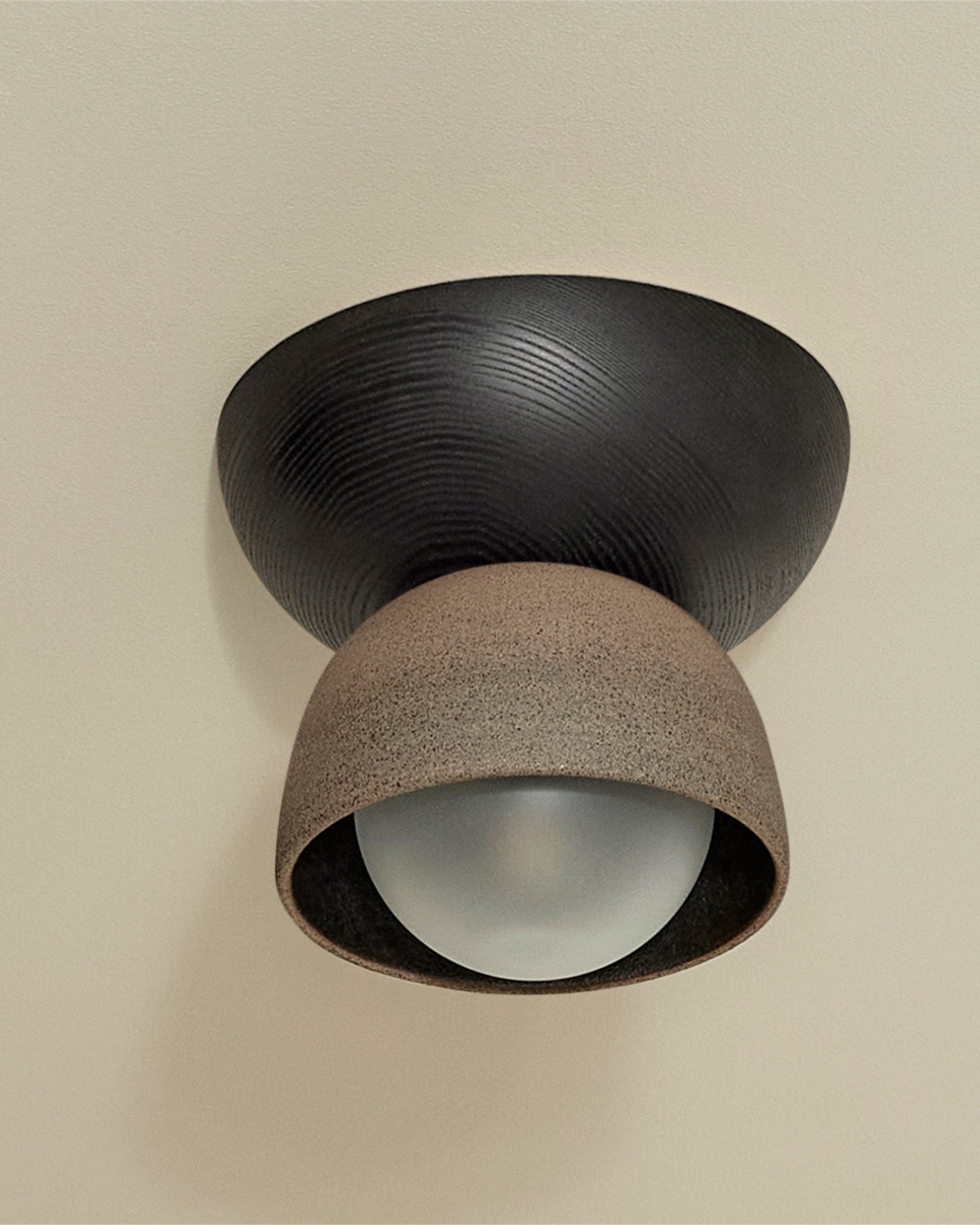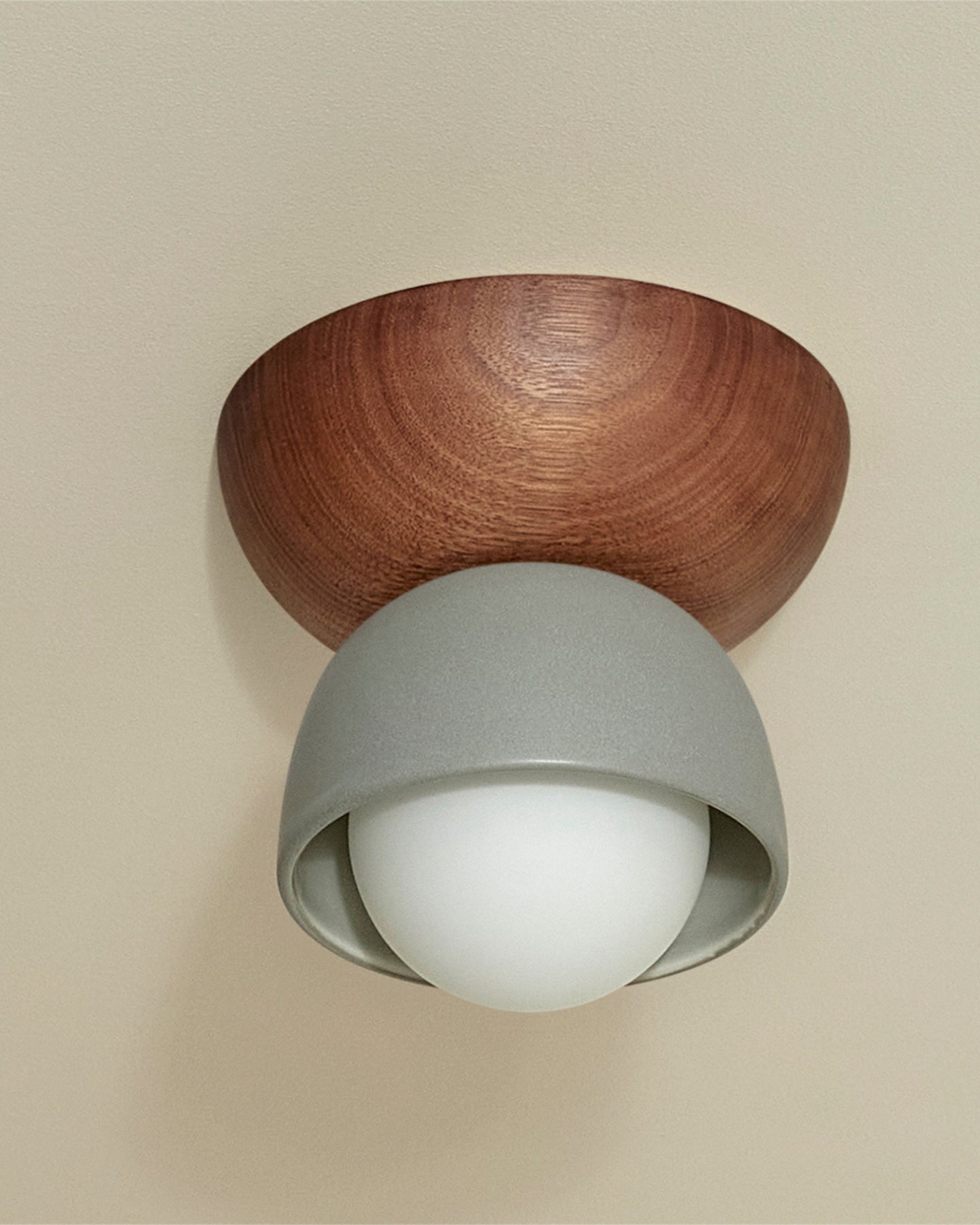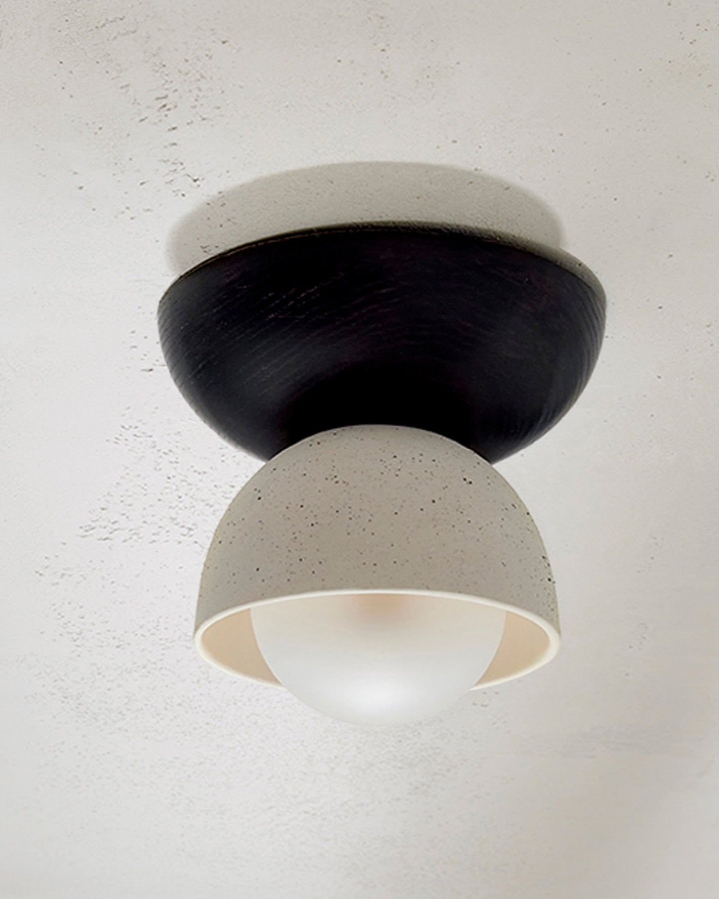 This Ceramic Bowl Ceiling Light is designed in Australia, combining two contrasting half domes made from smooth slip-cast ceramic and FSC-certified timber. Expertly designed, this modern addition adds a touch of natural beauty to any interior space, creating a unique focal point.