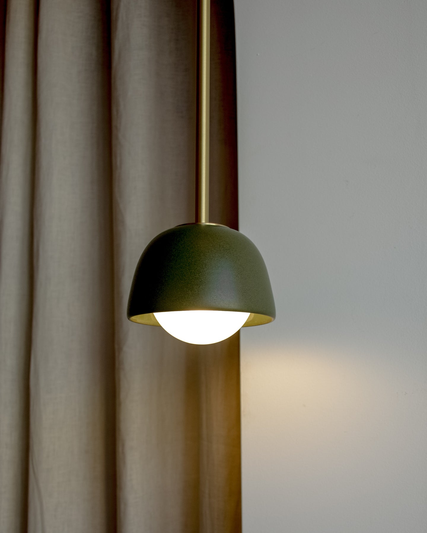 Designed in Australia this pendant showcases a ceramic bowl-like shade suspended form finished in Lead, Olive, Clay, Chartreuse, Fog or Vanilla Bean. This elemental pendant will become a focal point within any interior. Perfect for placement above a bed, dining table, or in a home corner, the Ceramic Bowl Suspended Rod Pendant in Terra offers soft, diffused lighting. The pendant comes with a 3000K G9 LED and a frosted glass diffuser and can be suspended using a 1500mm rod in your choice of Brushed Nickel, Brushed Brass, Brushed Black, or Satin White. Custom lengths and pricing are available upon request.