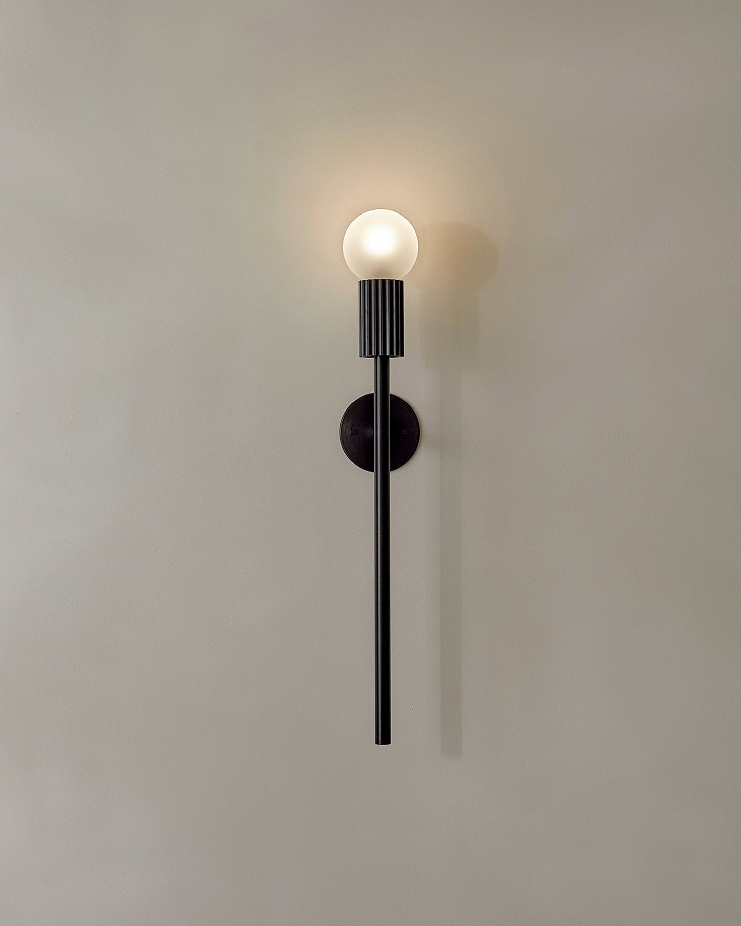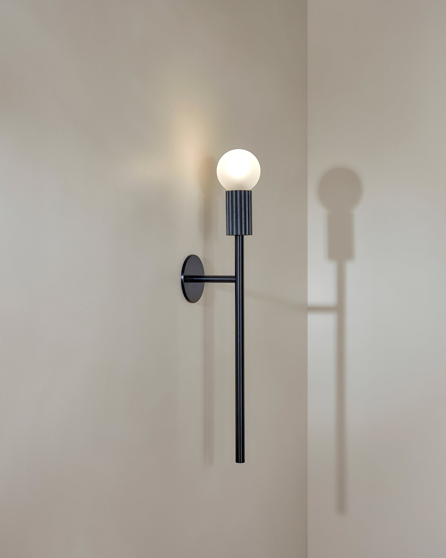 The fluted columns from Sota of Attalos inspired the timeless design of this Australian-designed wall-mounted fitting. Its Solid Brass lamp holder supports a delicate LED Frosted Globe creating a sense of proportion and balance within any interior.