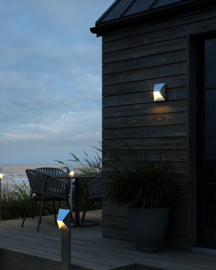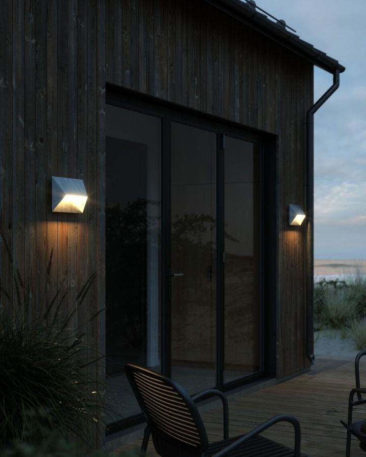 Timeless and modern, this wall light will enhance any outdoor space with its unique geometric shape. Designed by Danish duo Says Who and made from aluminium, the oblique shade will provide a nice look from all the different angles and will spread a pleasant light downwards.