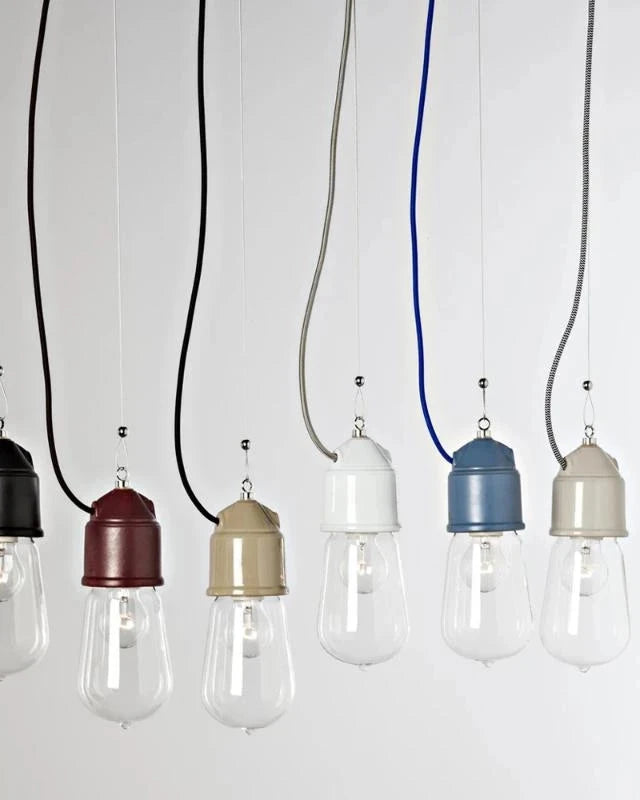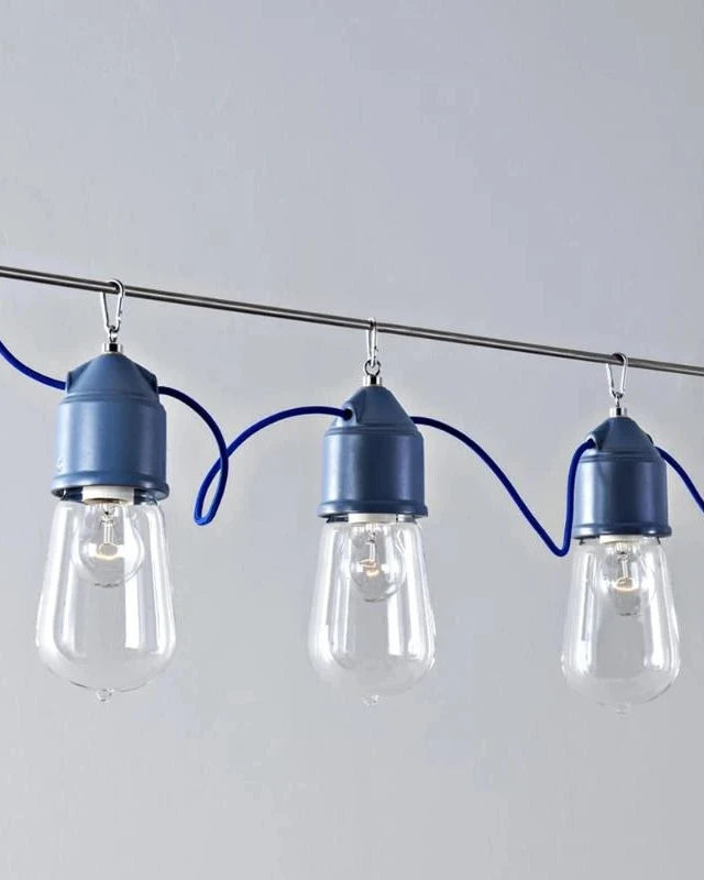 The Italian Industrial Single Pendant Light is inspired by the farming tradition of barn house evening feasts, whereby the light was produced by oil lamps on a cable. Our design allows to create a very flexible system that can be used indoors or out. Enjoy using the different coloured canopies to create the atmosphere you desire. Designed to perfection in Italy. This pendant light can be customised into a festoon light across your space (as pictured in the second and third image). Please get in touch with us if you would like to create a custom order.